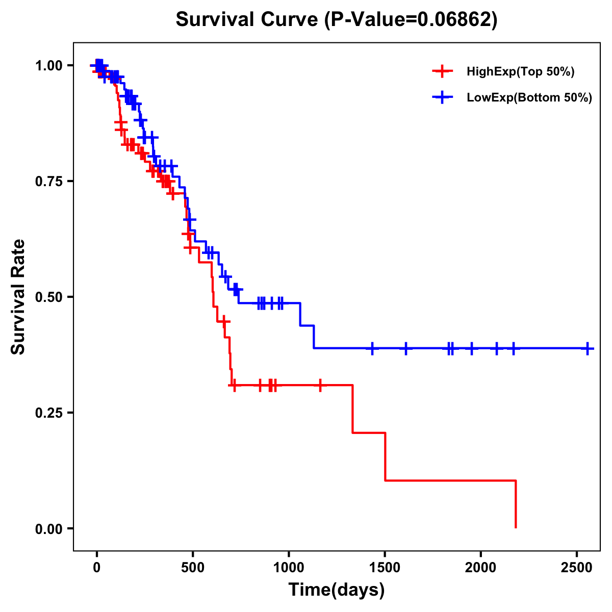 | Survival Curve of Pancreatic Cancer of Expression | Survival Curve of Pancreatic Cancer of Methylation | ||