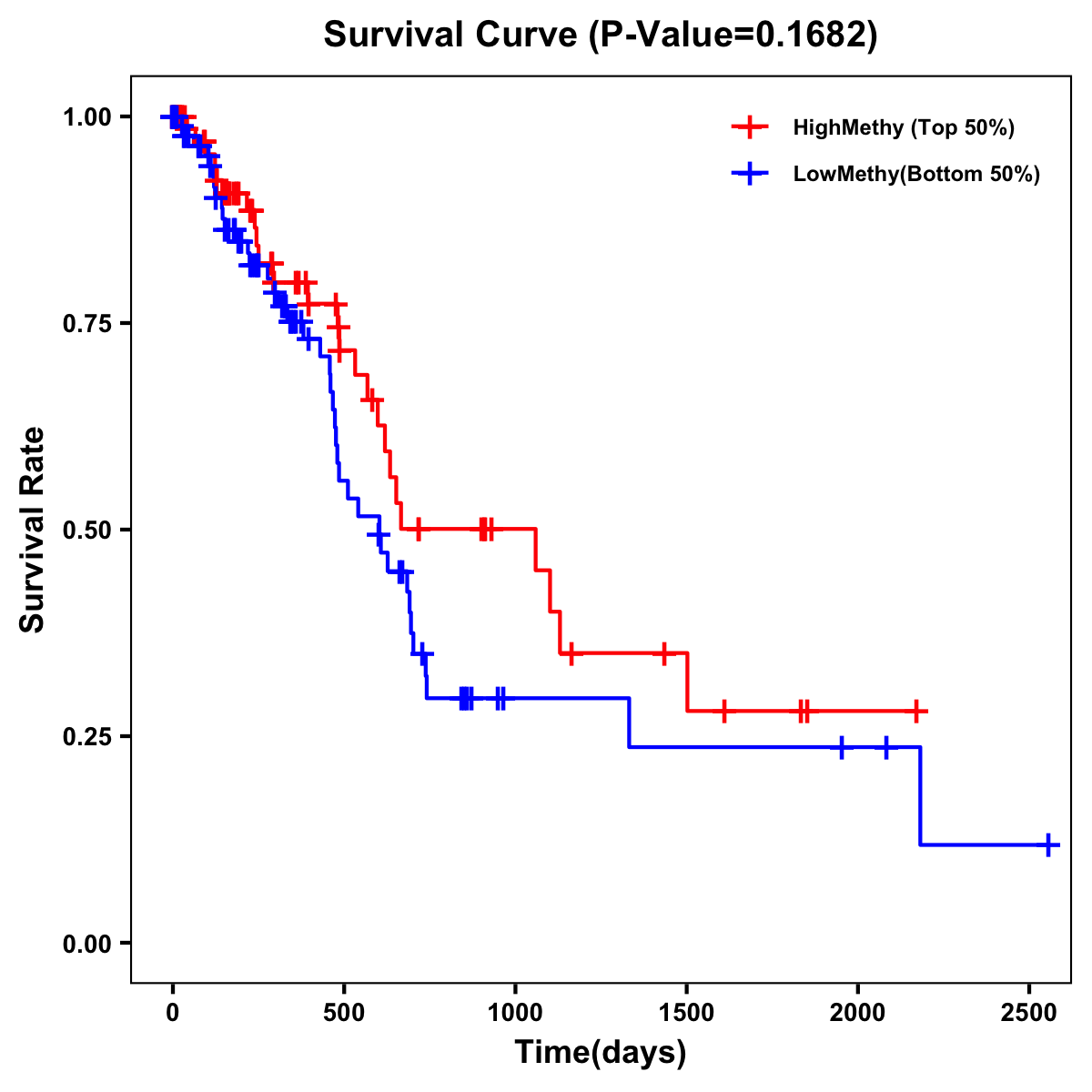 | Survival Curve of Pancreatic Cancer of Expression | Survival Curve of Pancreatic Cancer of Methylation | ||