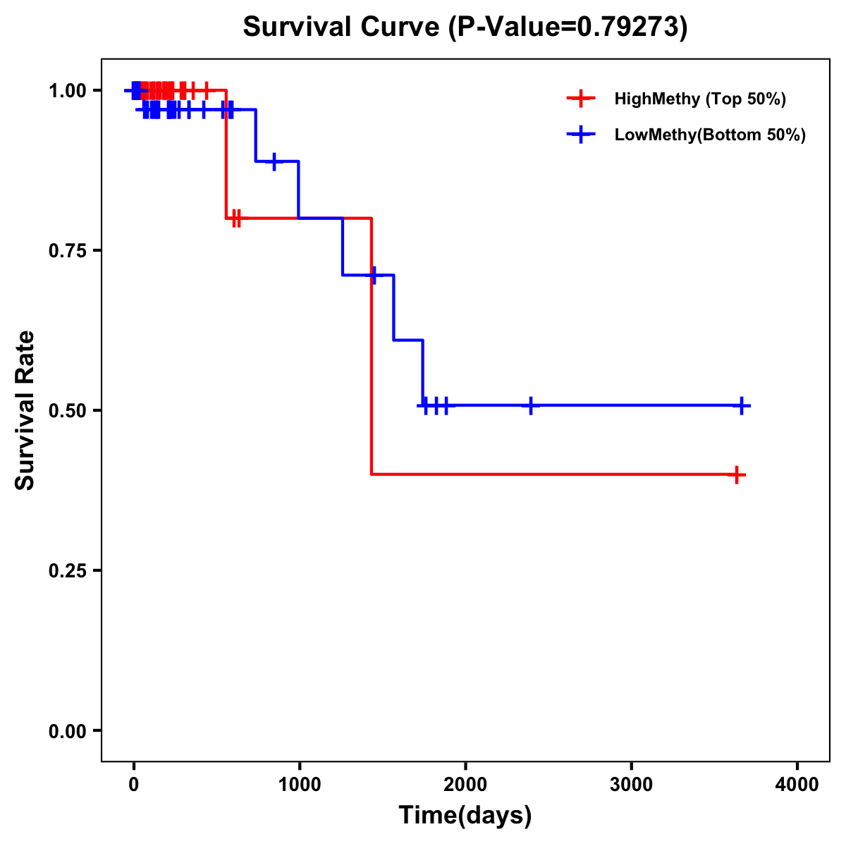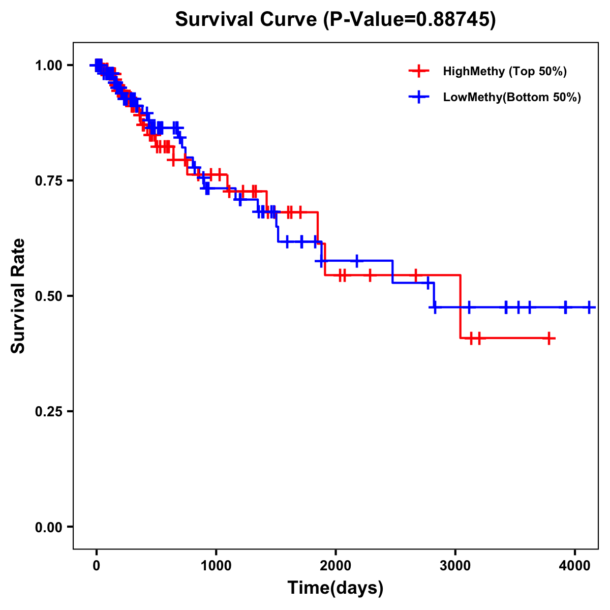 | Survival Curve of Colon Cancer on Methylation Level |