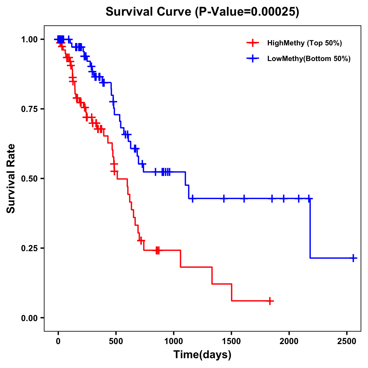 | Survival Curve of Pancreatic Cancer of Expression | Survival Curve of Pancreatic Cancer of Methylation | ||