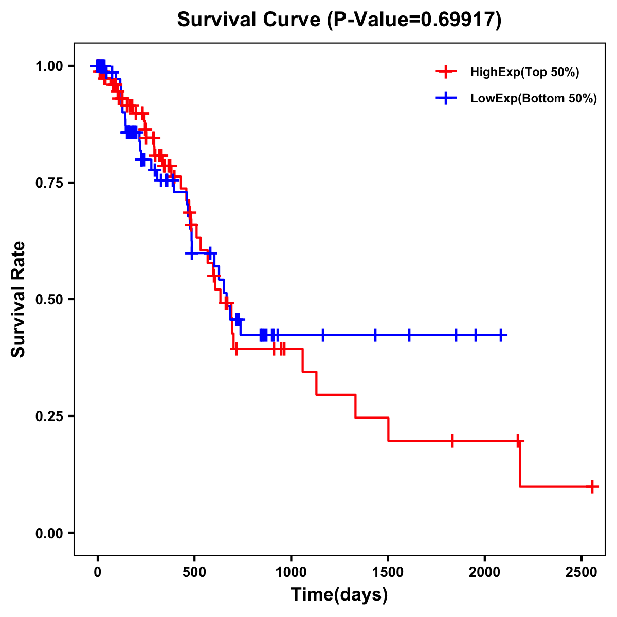 | Survival Curve of Pancreatic Cancer of Expression | Survival Curve of Pancreatic Cancer of Methylation | ||