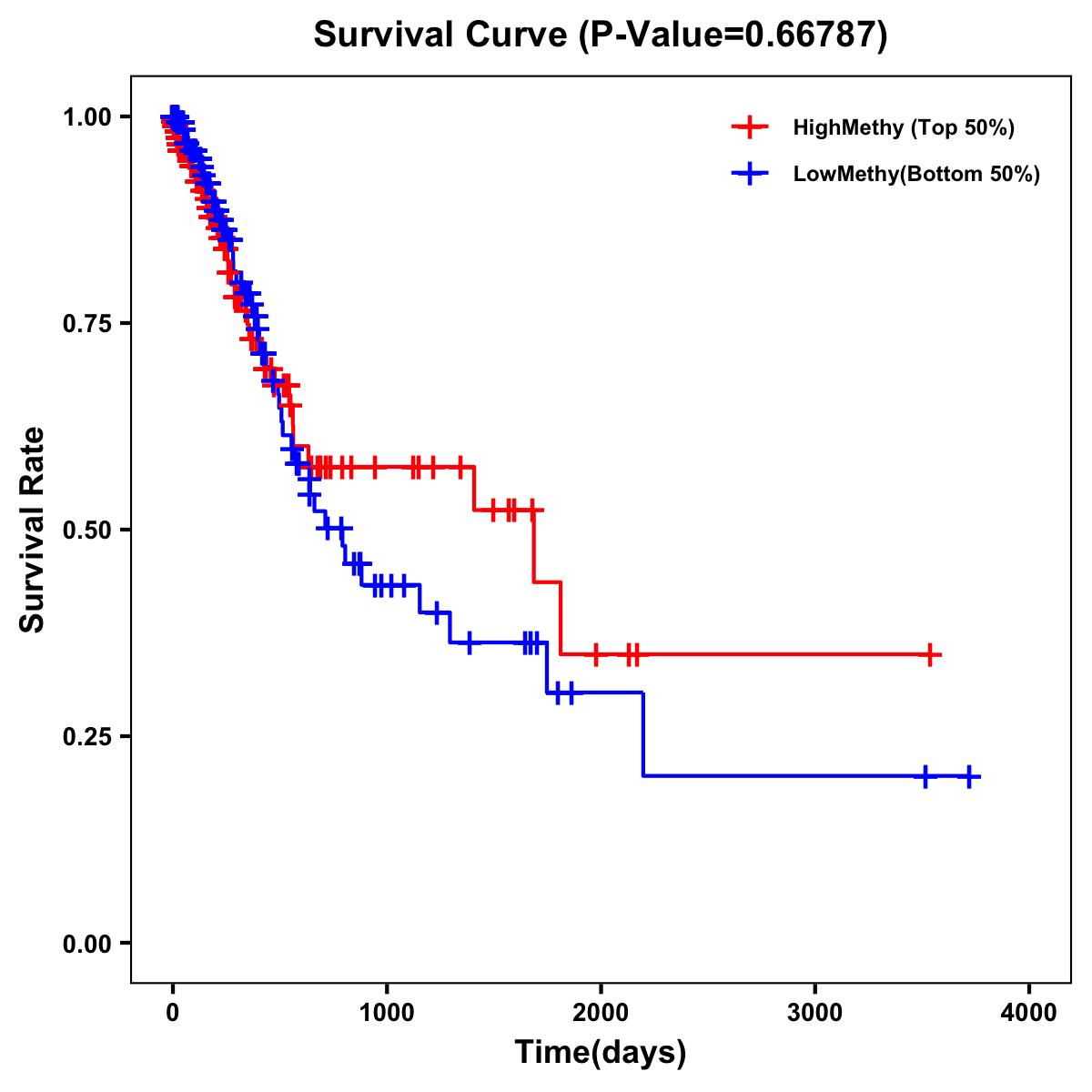 | Survival Curve of Stomach Cancer of Expression | Survival Curve of Stomach Cancer of Methylation | ||