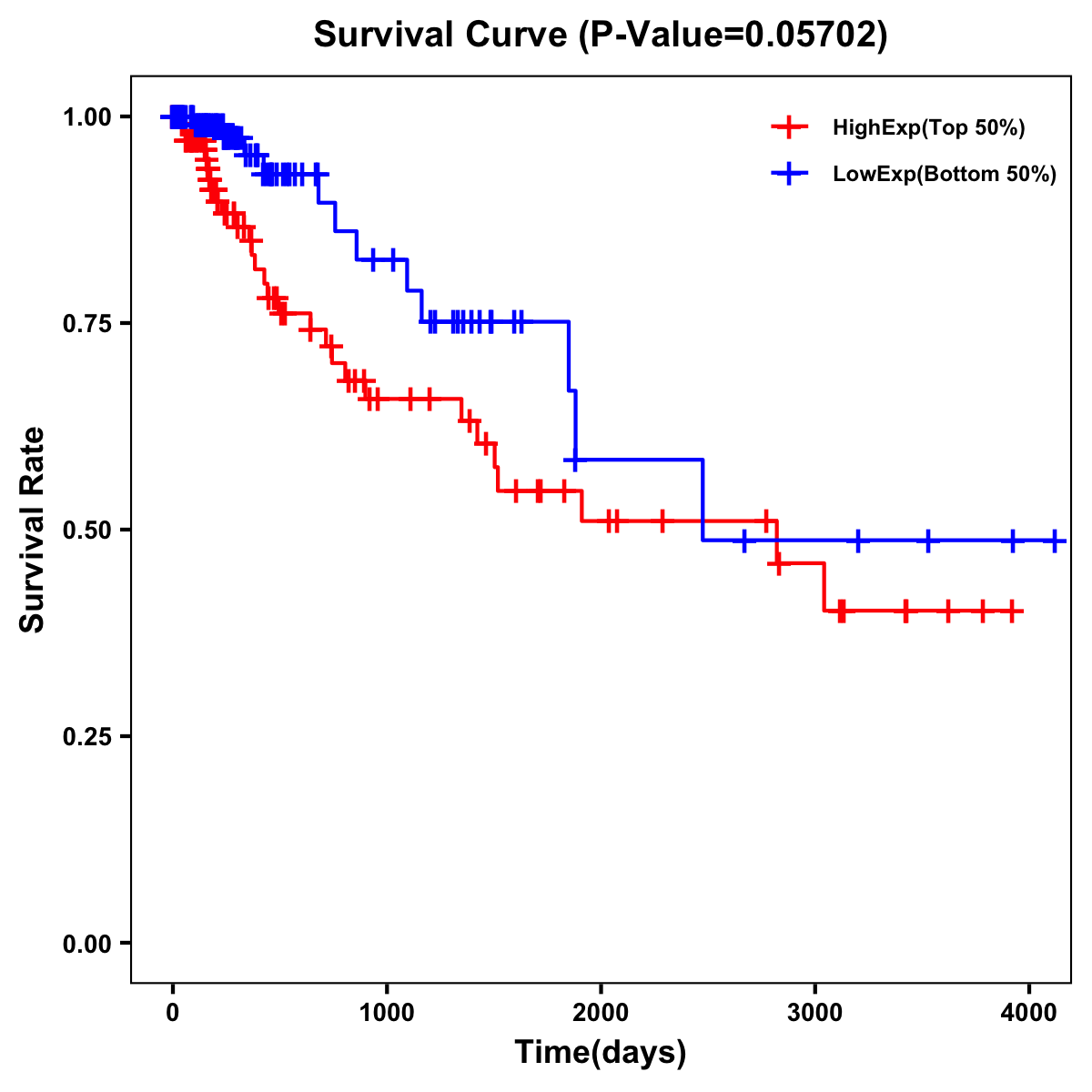 | Survival Curve of Colon Cancer on Expression Level |