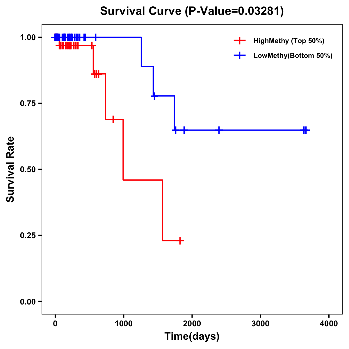 | Survival Curve of Colon Cancer on Methylation Level |