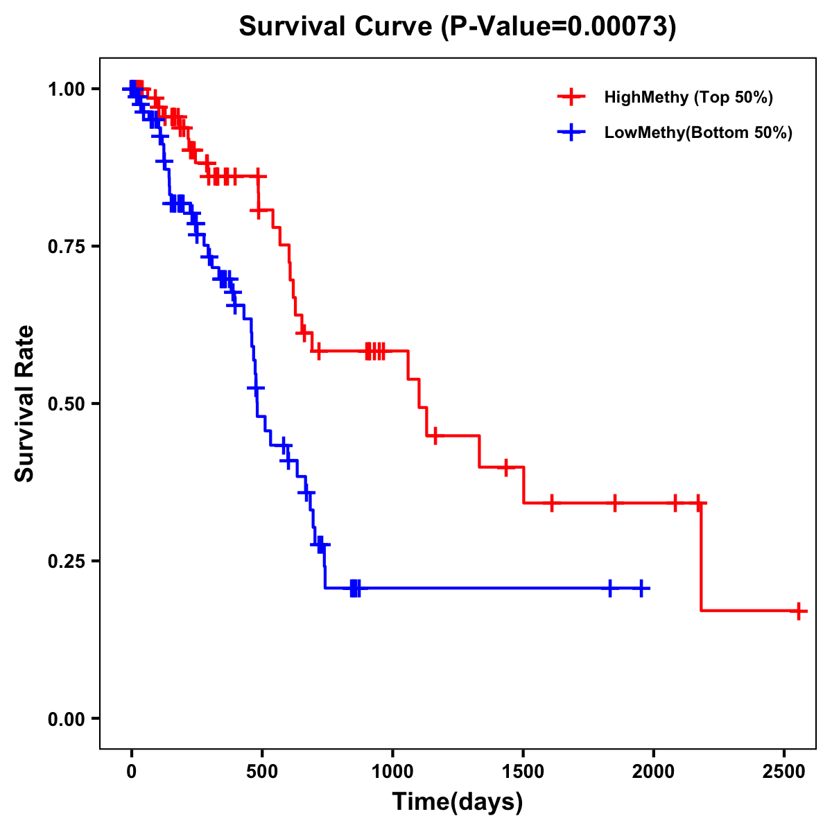 | Survival Curve of Pancreatic Cancer of Expression | Survival Curve of Pancreatic Cancer of Methylation | ||