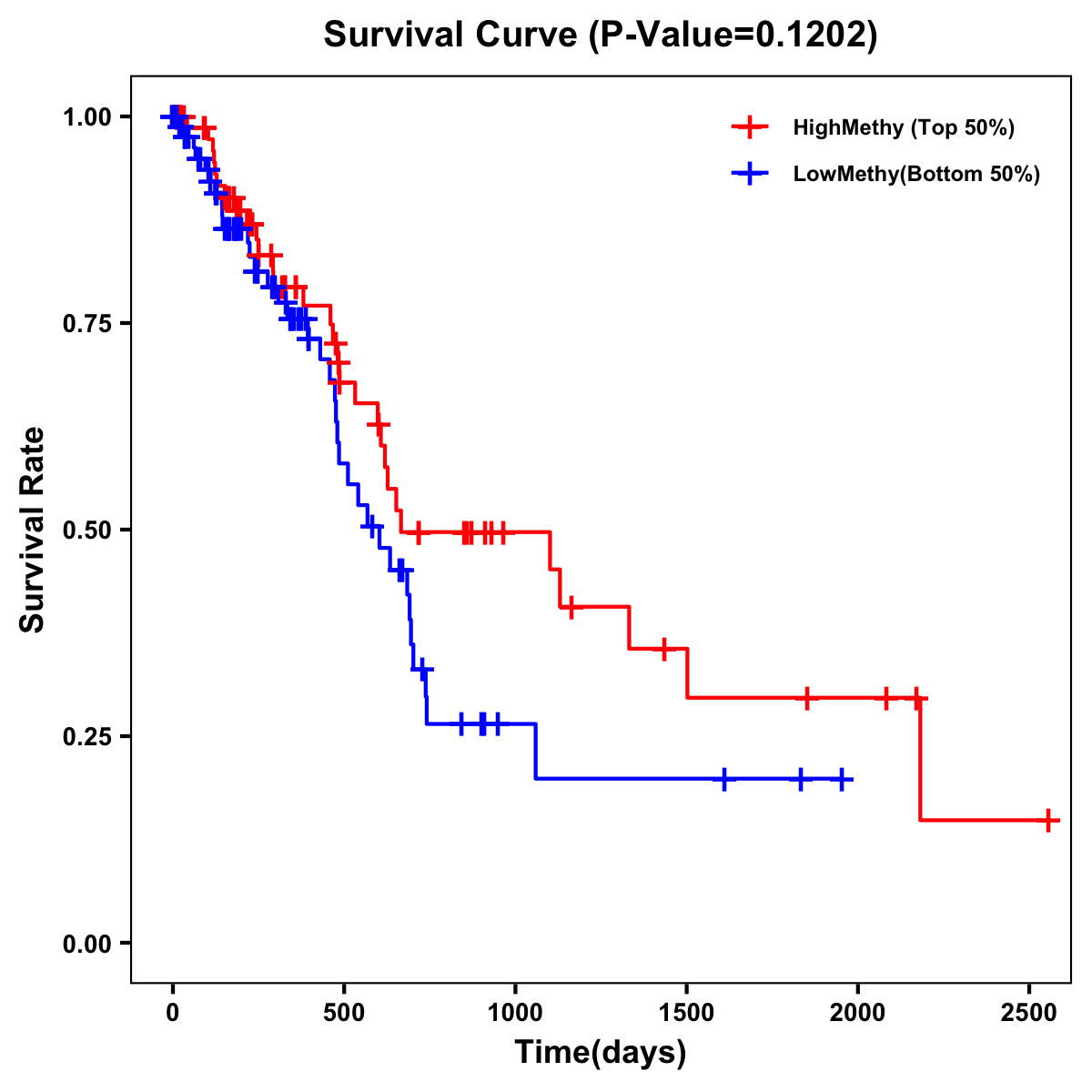 | Survival Curve of Pancreatic Cancer of Expression | Survival Curve of Pancreatic Cancer of Methylation | ||
