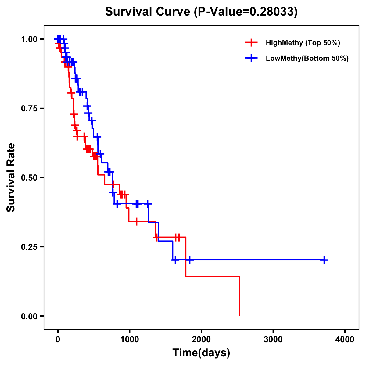 | Survival Curve of Esophagus Cancer of Expression | Survival Curve of Esophagus Cancer of Methylation | ||