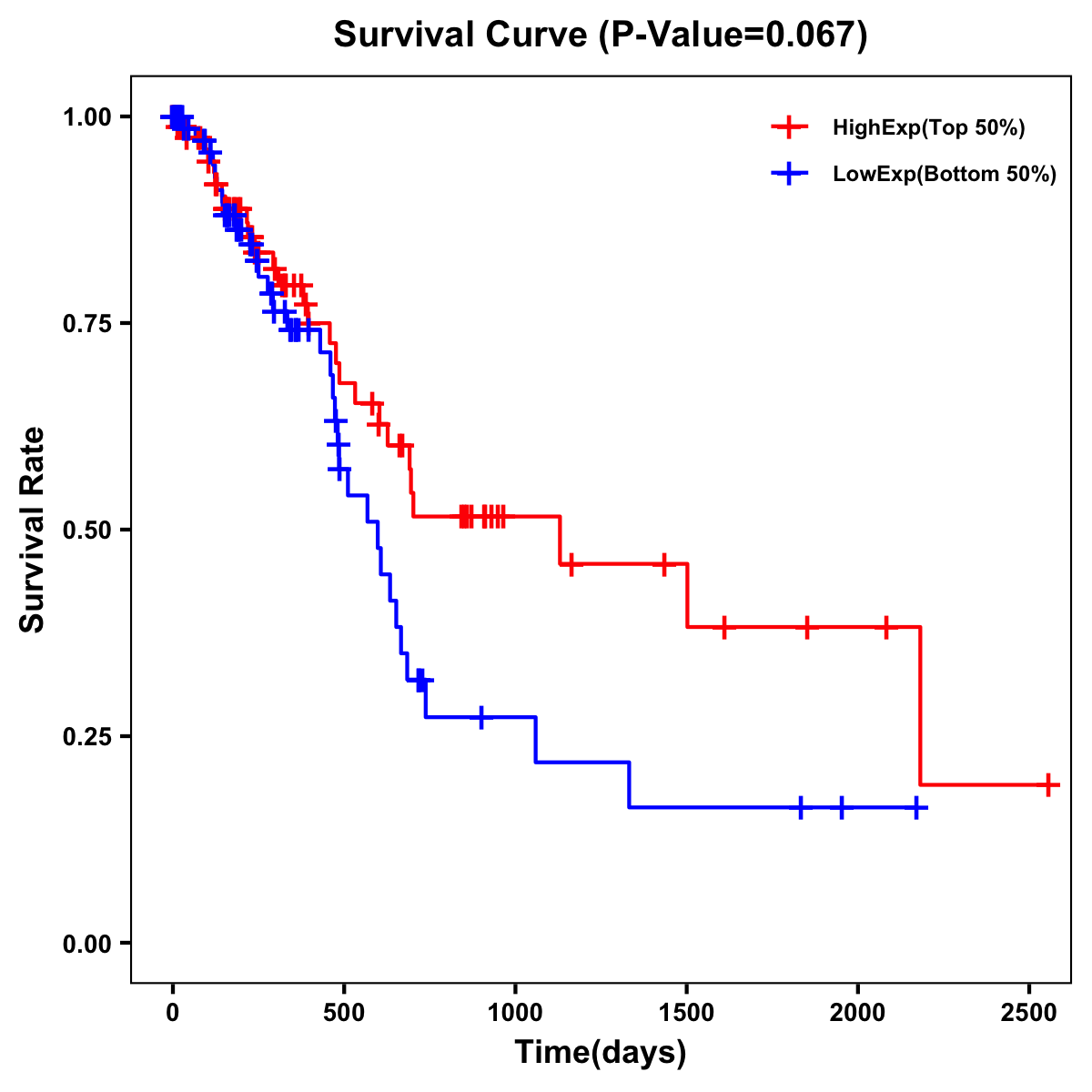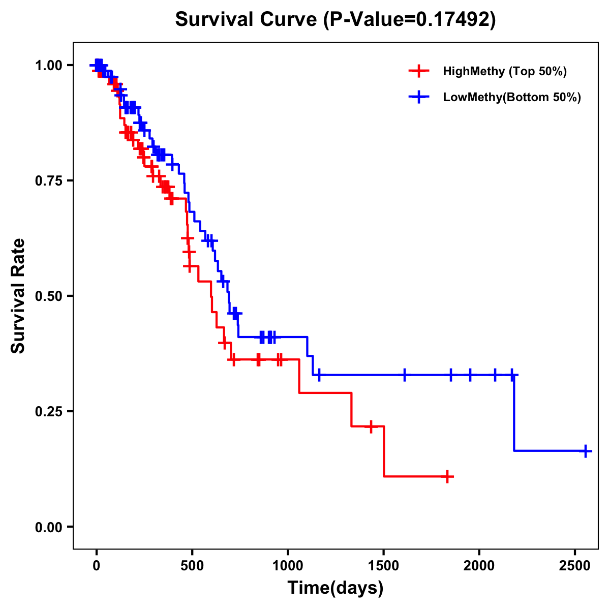 | Survival Curve of Pancreatic Cancer of Expression | Survival Curve of Pancreatic Cancer of Methylation | ||