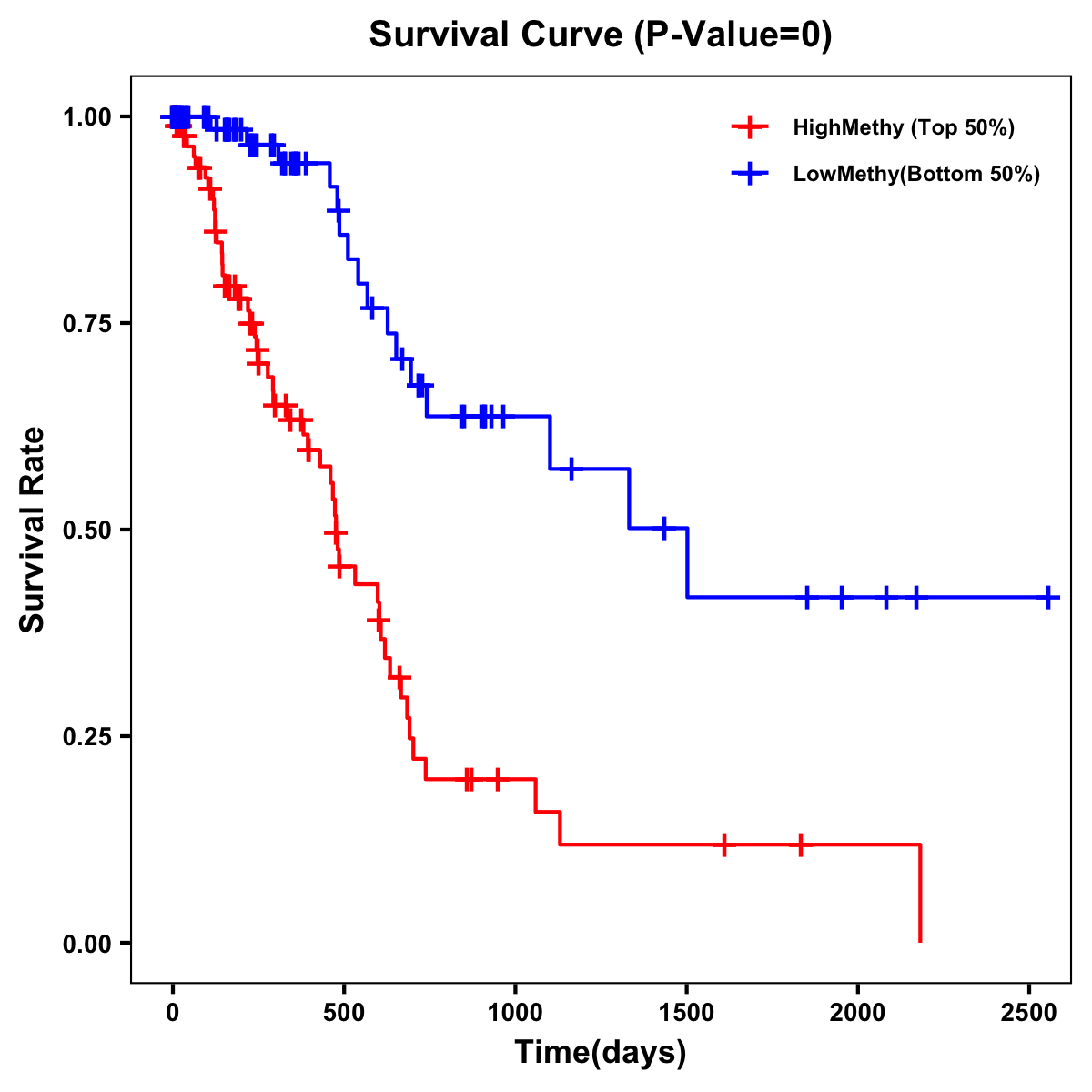 | Survival Curve of Pancreatic Cancer of Expression | Survival Curve of Pancreatic Cancer of Methylation | ||
