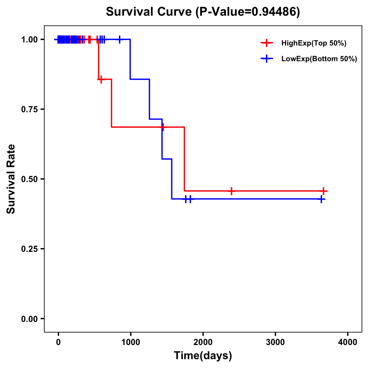 | Survival Curve of Colon Cancer on Expression Level |