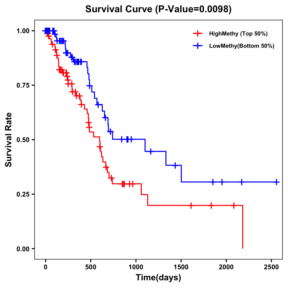 | Survival Curve of Pancreatic Cancer of Expression | Survival Curve of Pancreatic Cancer of Methylation | ||