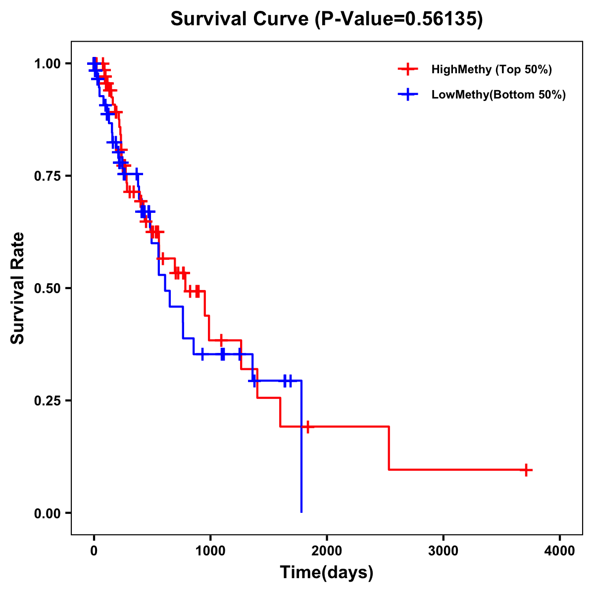 | Survival Curve of Esophagus Cancer of Expression | Survival Curve of Esophagus Cancer of Methylation | ||