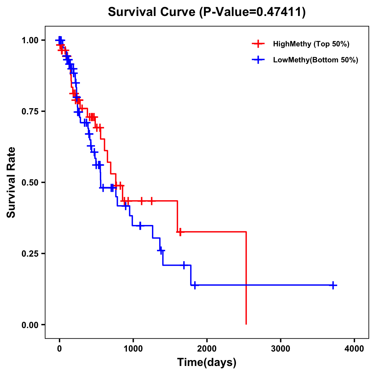 | Survival Curve of Esophagus Cancer of Expression | Survival Curve of Esophagus Cancer of Methylation | ||