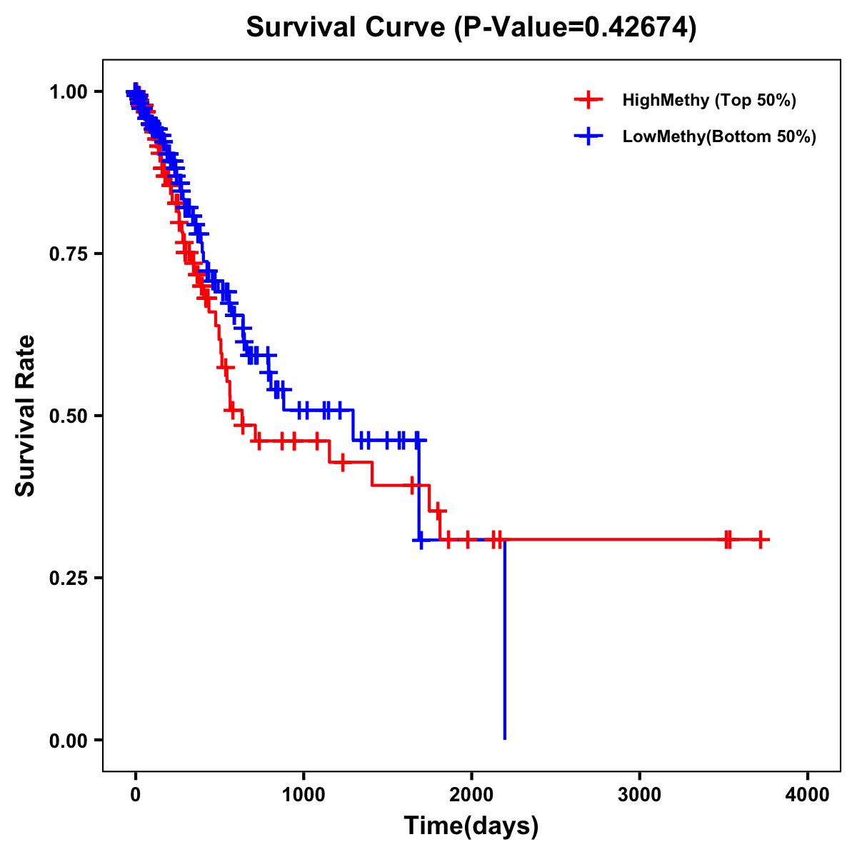 | Survival Curve of Stomach Cancer of Expression | Survival Curve of Stomach Cancer of Methylation | ||