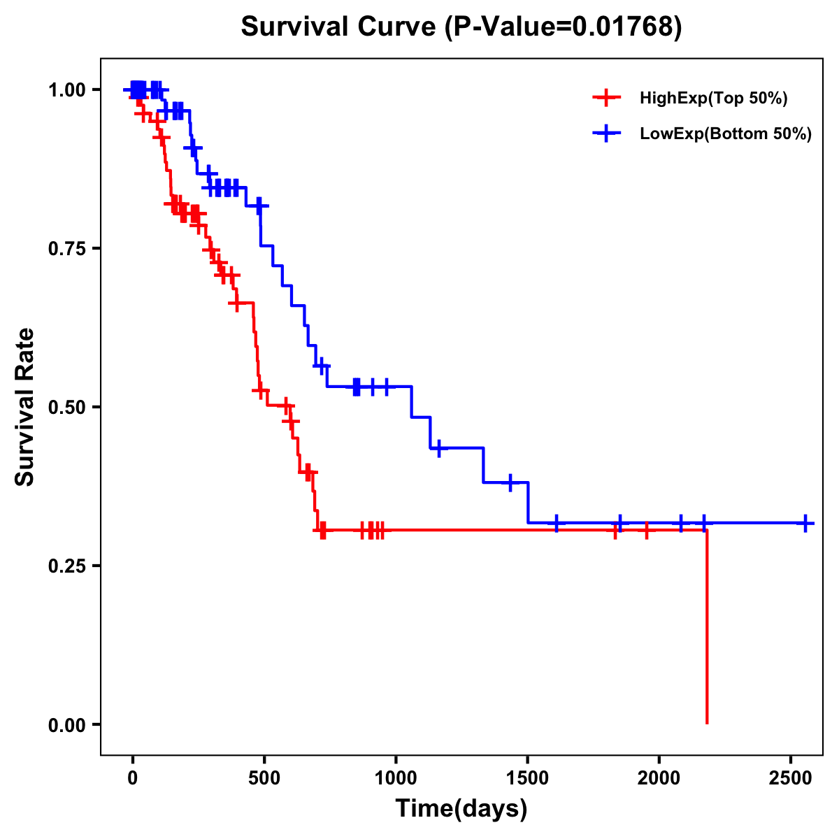 | Survival Curve of Pancreatic Cancer of Expression | Survival Curve of Pancreatic Cancer of Methylation | ||