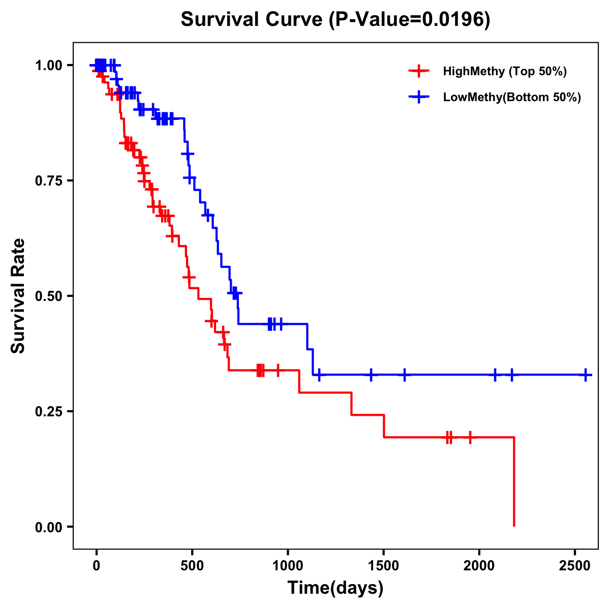 | Survival Curve of Pancreatic Cancer of Expression | Survival Curve of Pancreatic Cancer of Methylation | ||