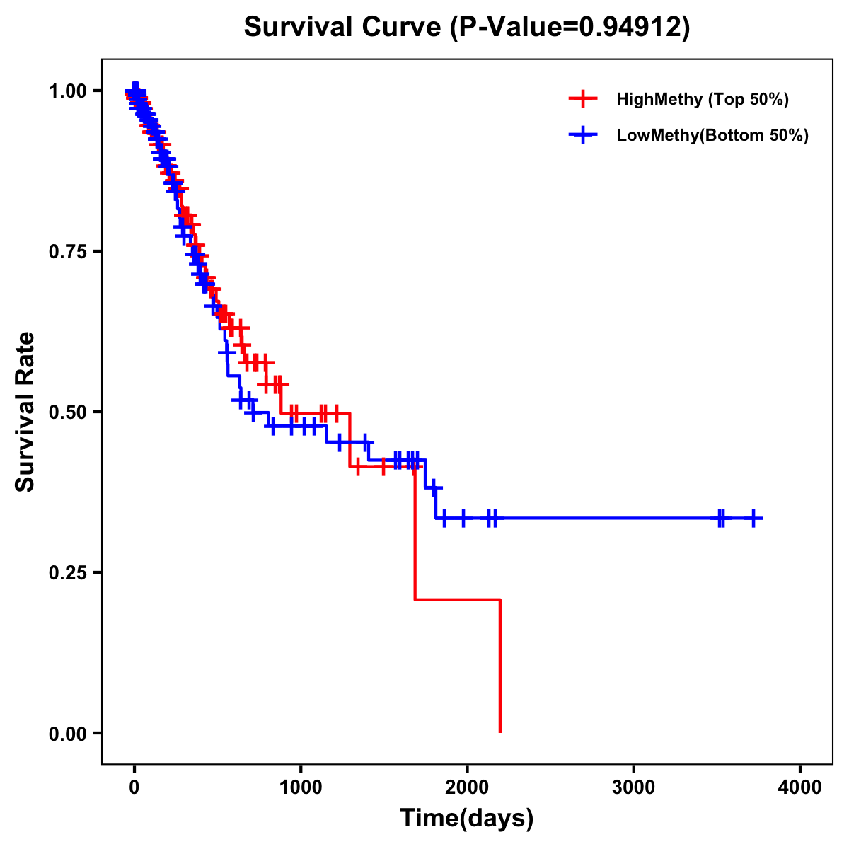 | Survival Curve of Stomach Cancer of Expression | Survival Curve of Stomach Cancer of Methylation | ||