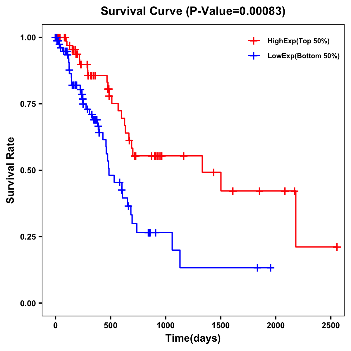 | Survival Curve of Pancreatic Cancer of Expression | Survival Curve of Pancreatic Cancer of Methylation | ||