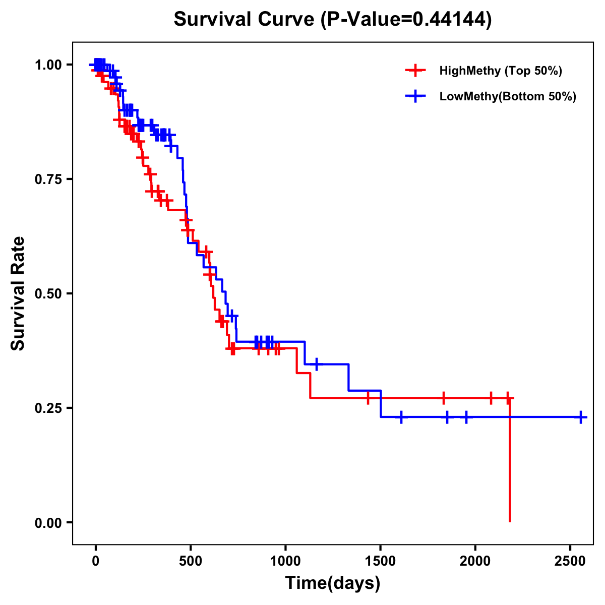 | Survival Curve of Pancreatic Cancer of Expression | Survival Curve of Pancreatic Cancer of Methylation | ||