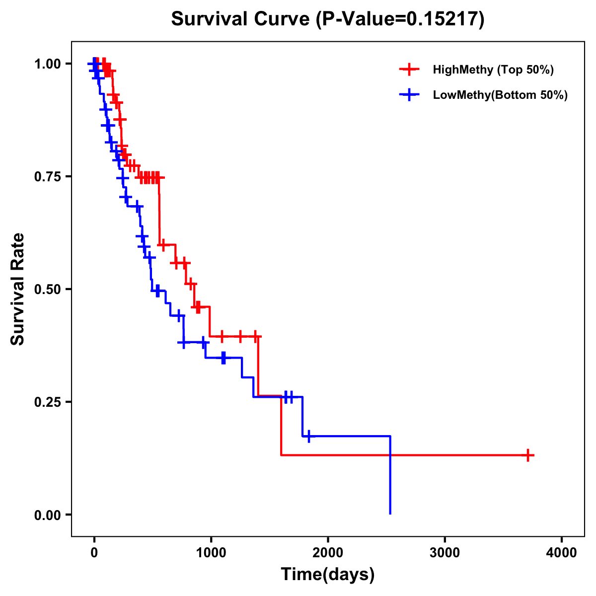| Survival Curve of Esophagus Cancer of Expression | Survival Curve of Esophagus Cancer of Methylation | ||