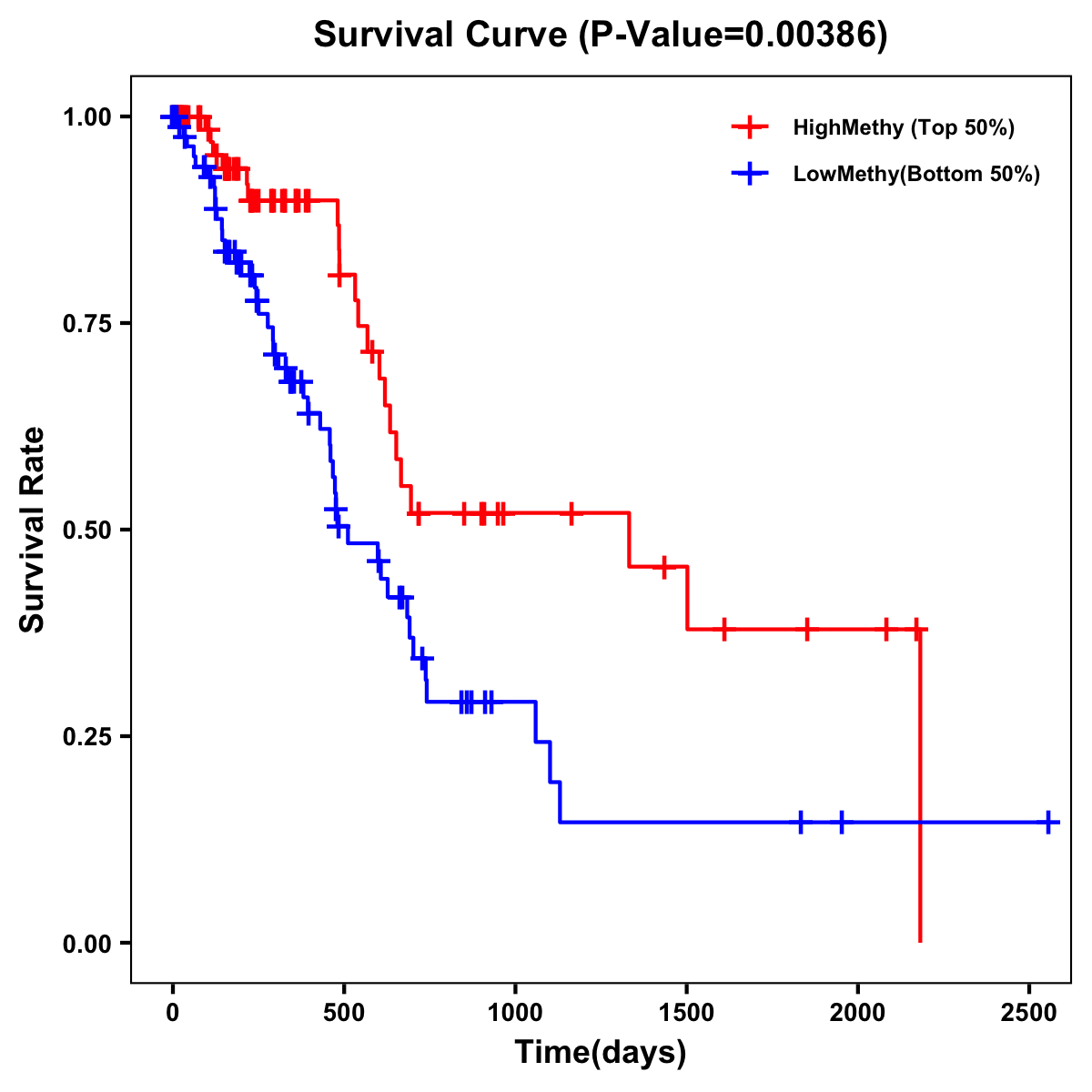 | Survival Curve of Pancreatic Cancer of Expression | Survival Curve of Pancreatic Cancer of Methylation | ||