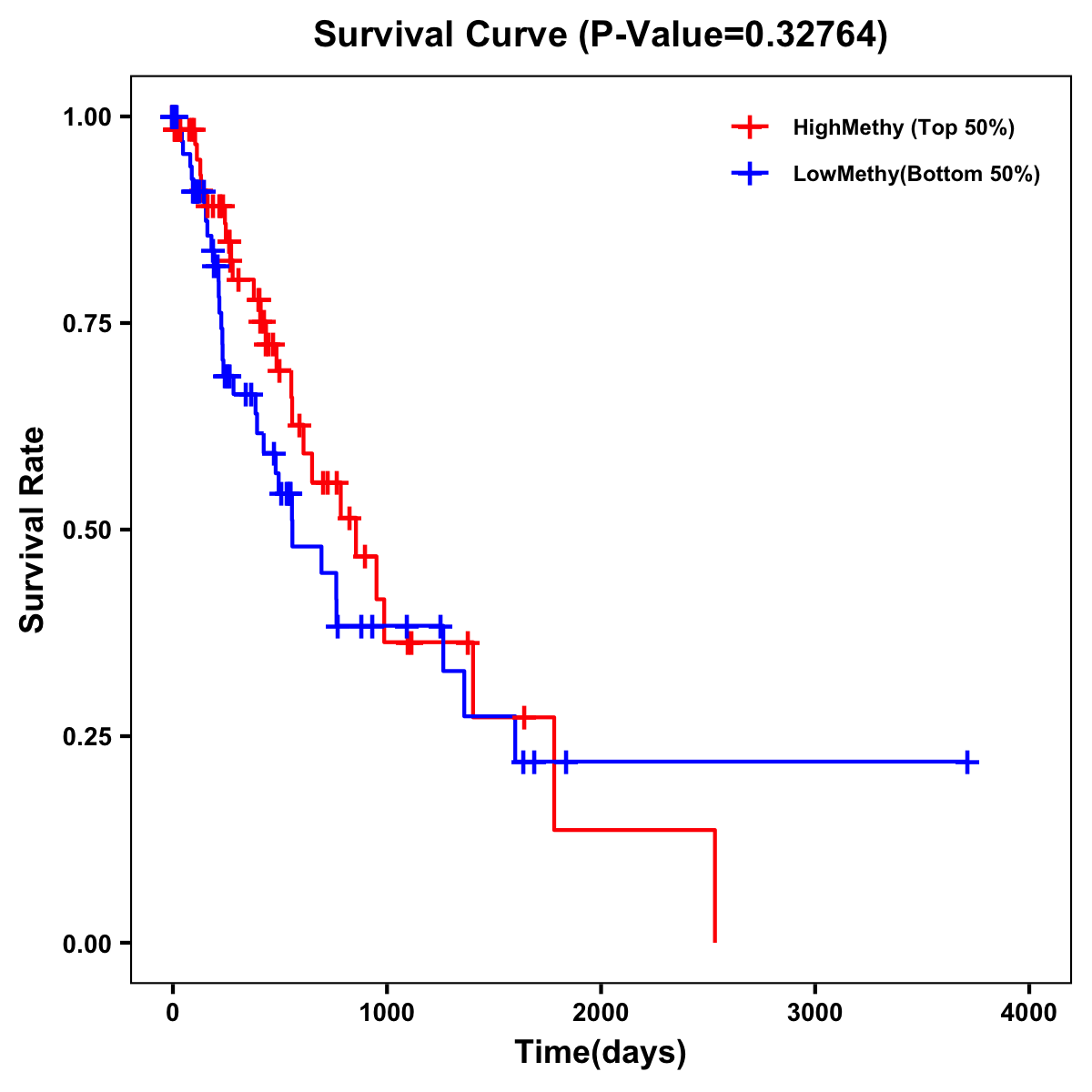 | Survival Curve of Esophagus Cancer of Expression | Survival Curve of Esophagus Cancer of Methylation | ||