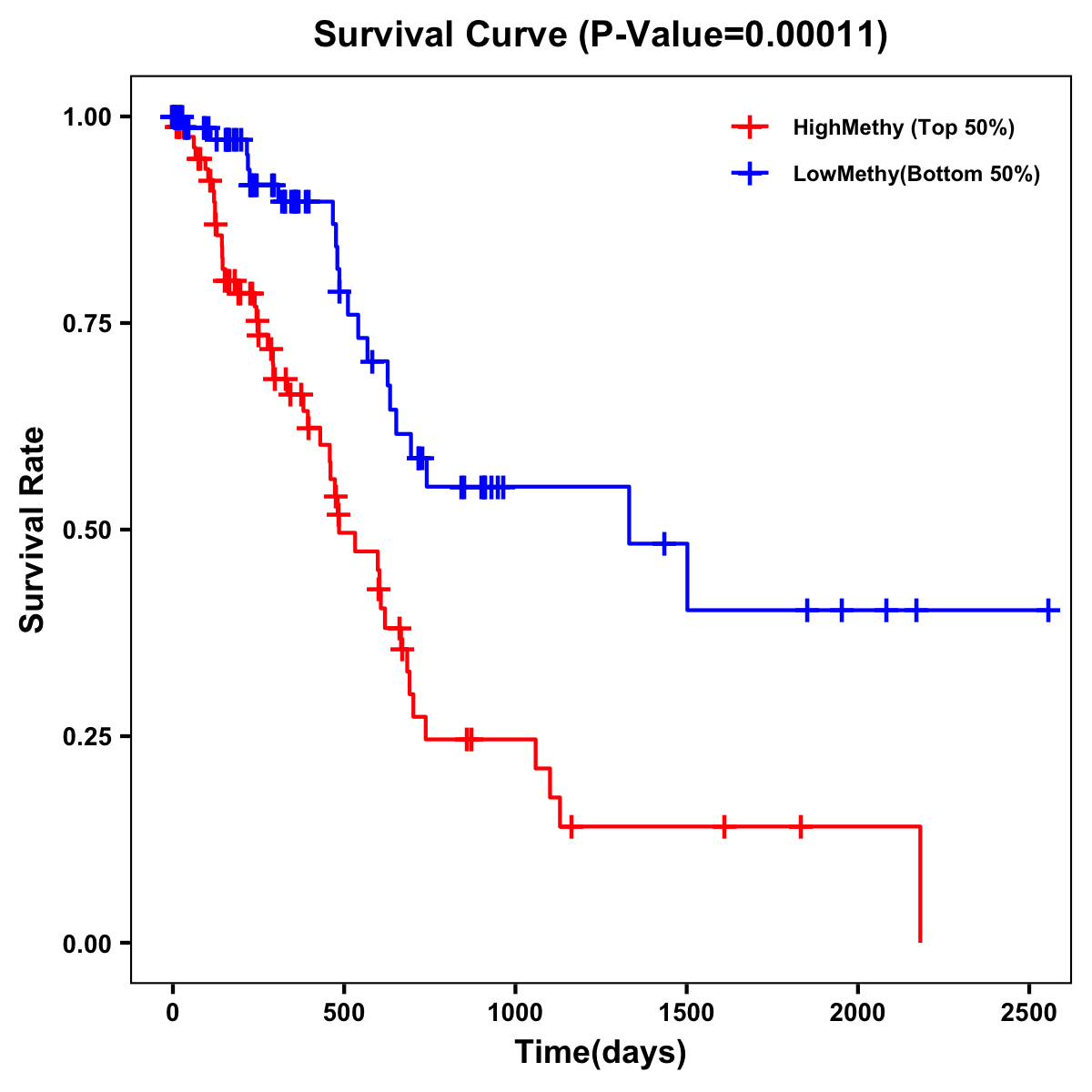 | Survival Curve of Pancreatic Cancer of Expression | Survival Curve of Pancreatic Cancer of Methylation | ||