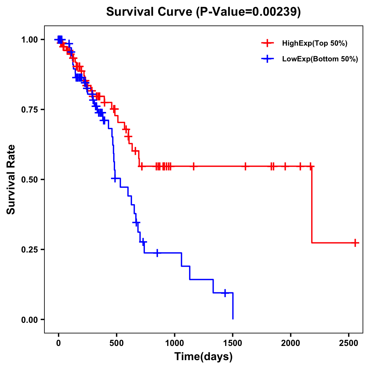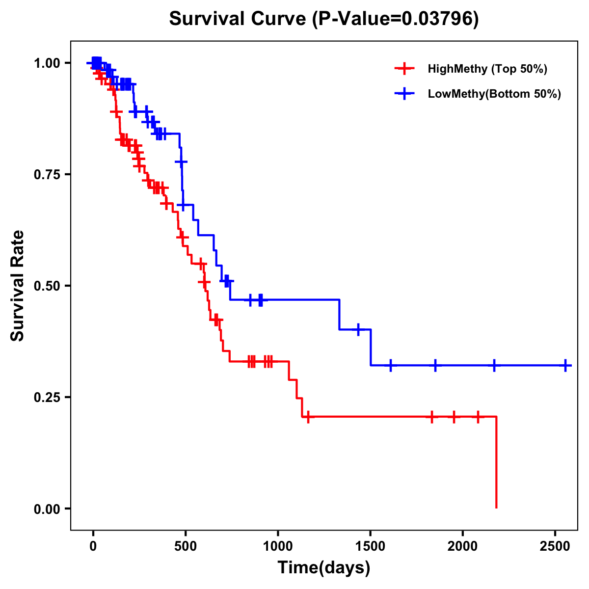 | Survival Curve of Pancreatic Cancer of Expression | Survival Curve of Pancreatic Cancer of Methylation | ||
