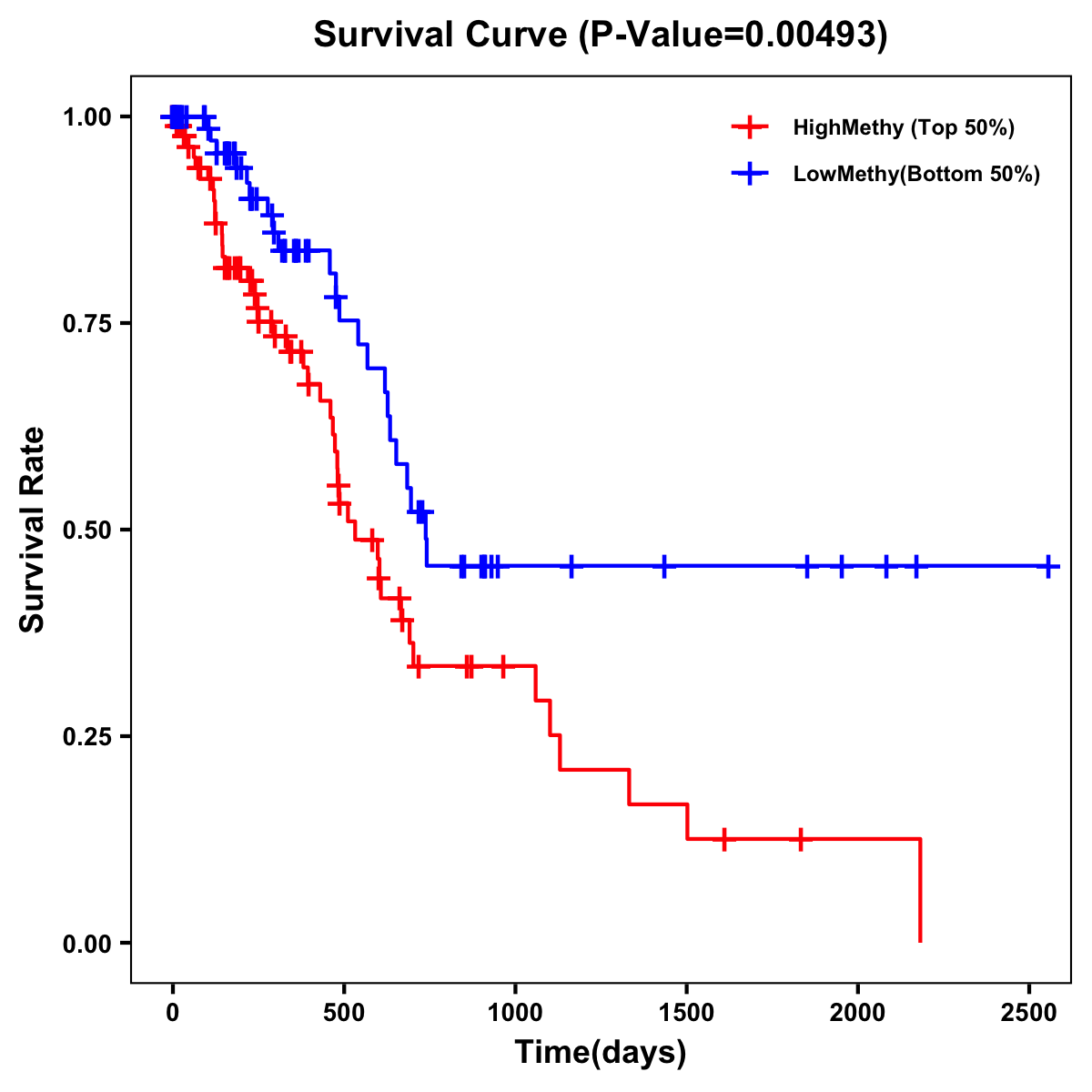 | Survival Curve of Pancreatic Cancer of Expression | Survival Curve of Pancreatic Cancer of Methylation | ||
