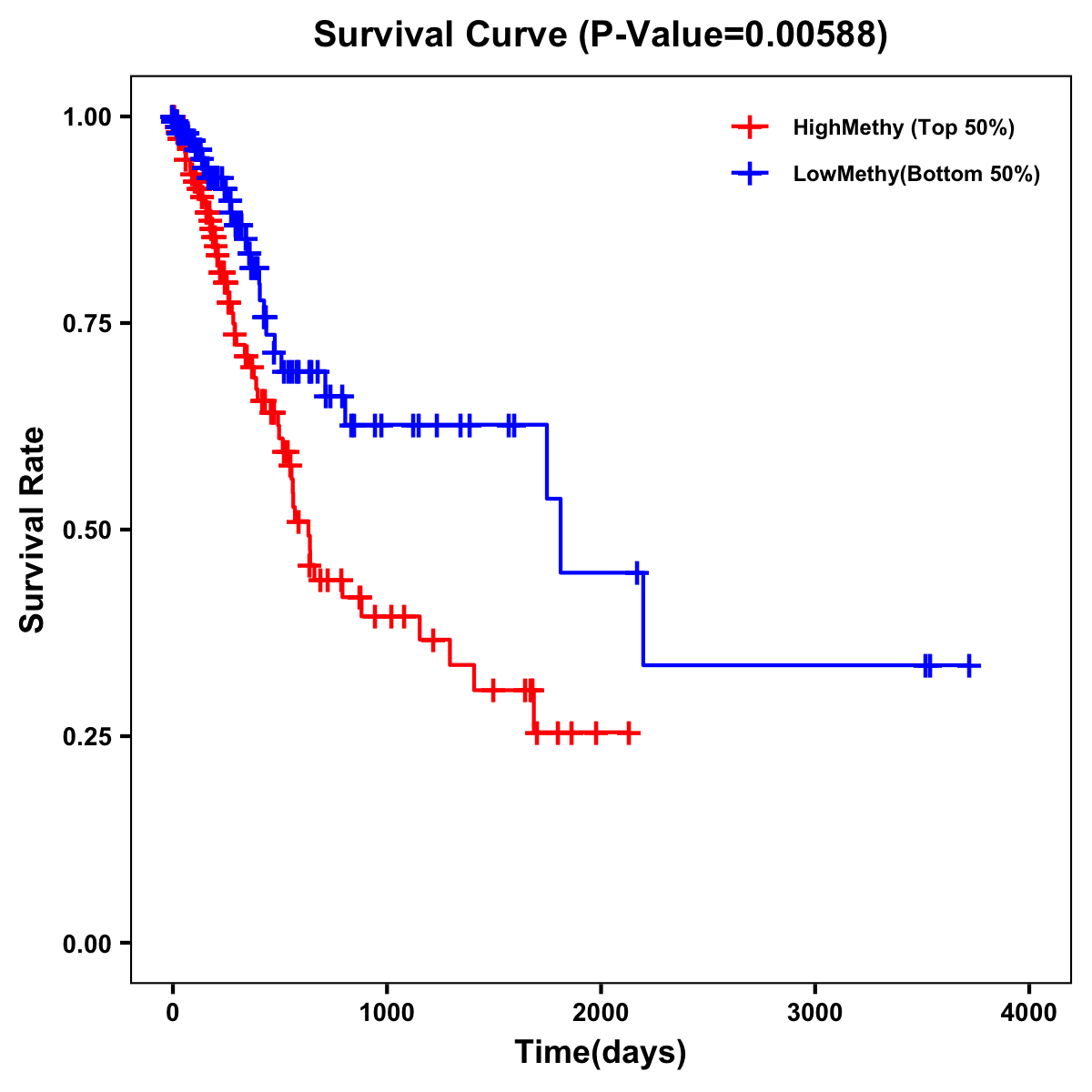 | Survival Curve of Stomach Cancer of Expression | Survival Curve of Stomach Cancer of Methylation | ||