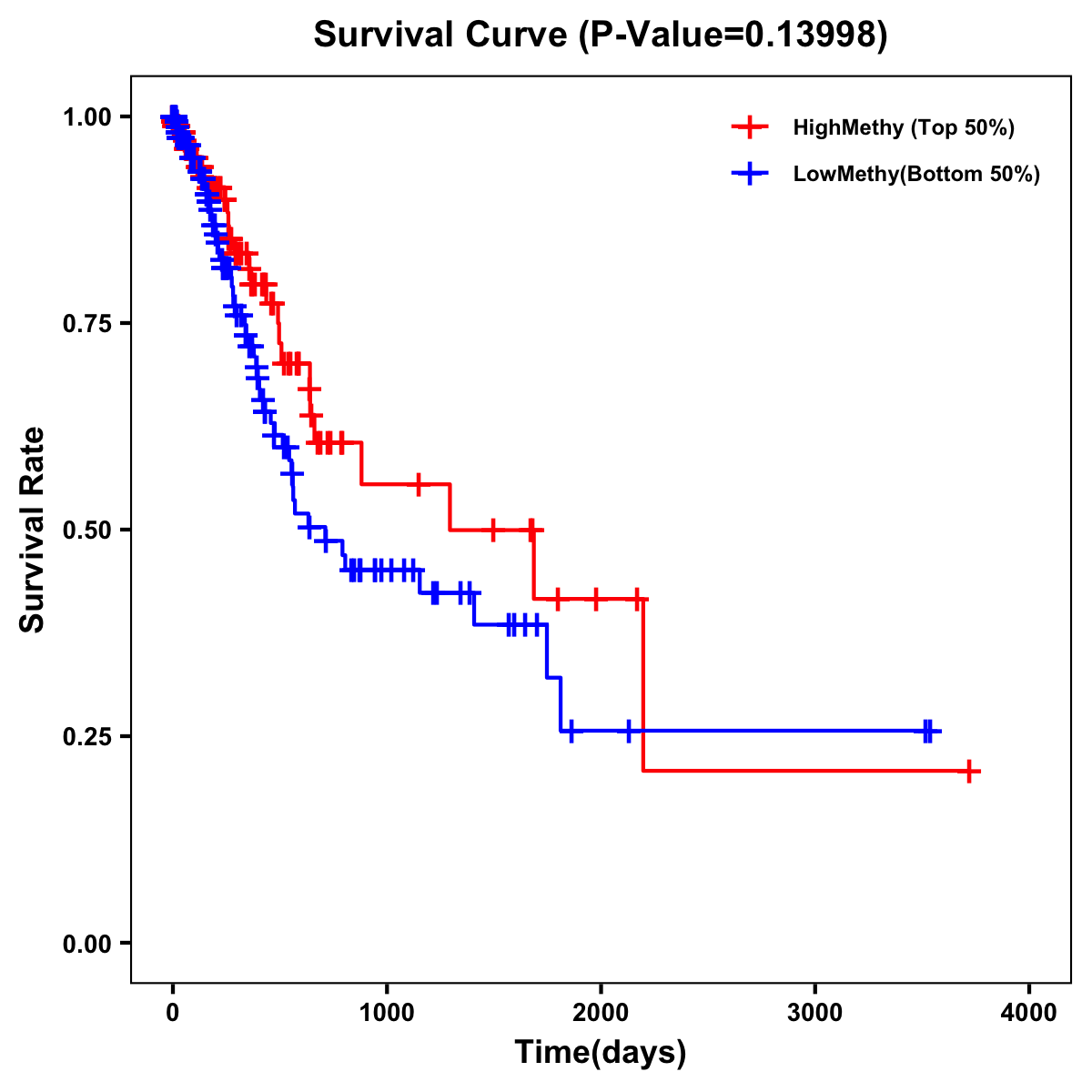 | Survival Curve of Stomach Cancer of Expression | Survival Curve of Stomach Cancer of Methylation | ||