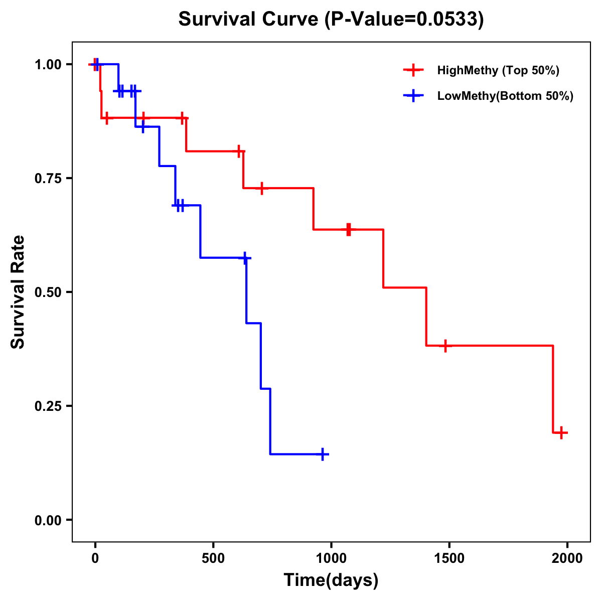 | Survival Curve of Biliary tract Cancer of Expression | Survival Curve of Biliary tract Cancer of Methylation | ||