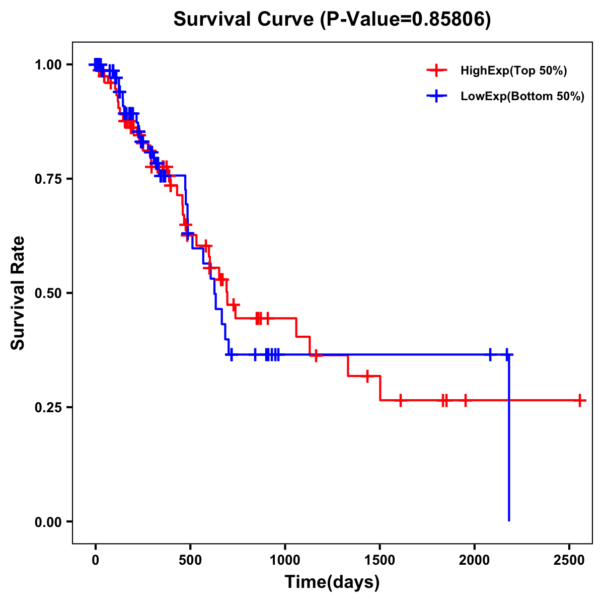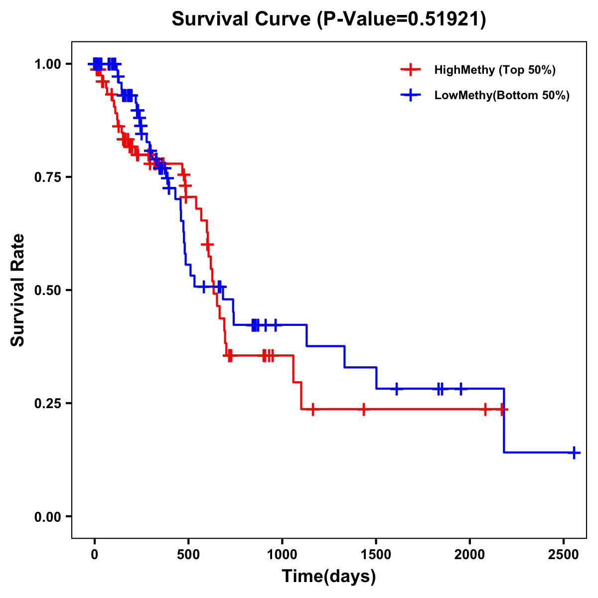 | Survival Curve of Pancreatic Cancer of Expression | Survival Curve of Pancreatic Cancer of Methylation | ||