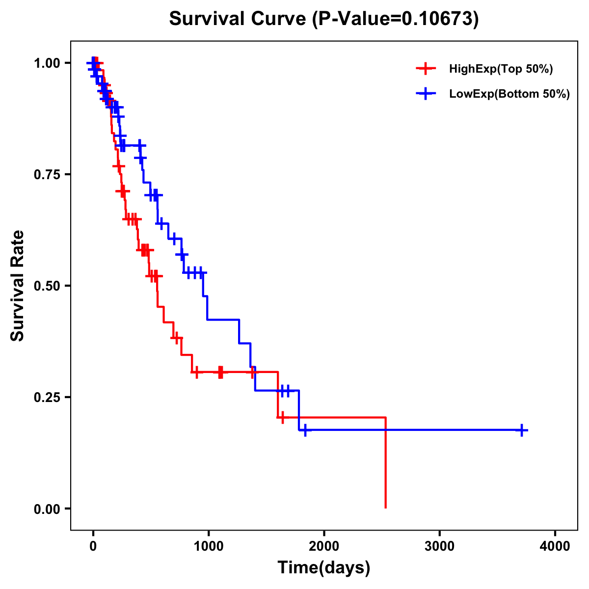 | Survival Curve of Esophagus Cancer of Expression | Survival Curve of Esophagus Cancer of Methylation | ||