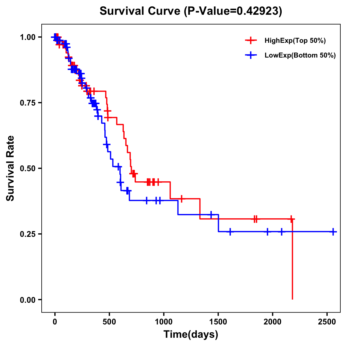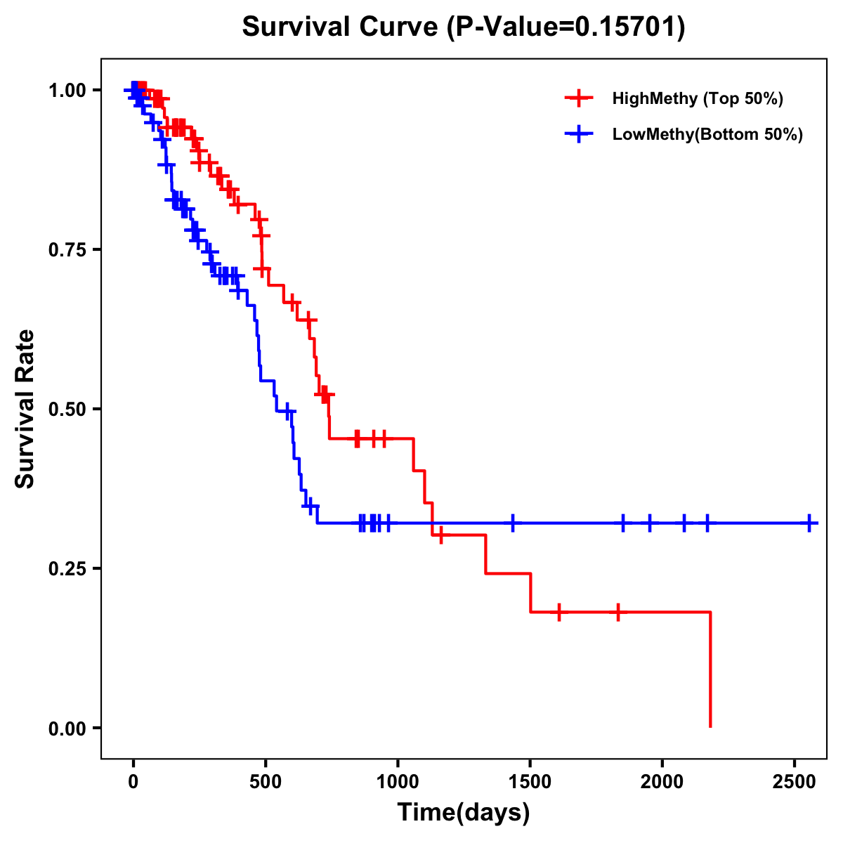 | Survival Curve of Pancreatic Cancer of Expression | Survival Curve of Pancreatic Cancer of Methylation | ||