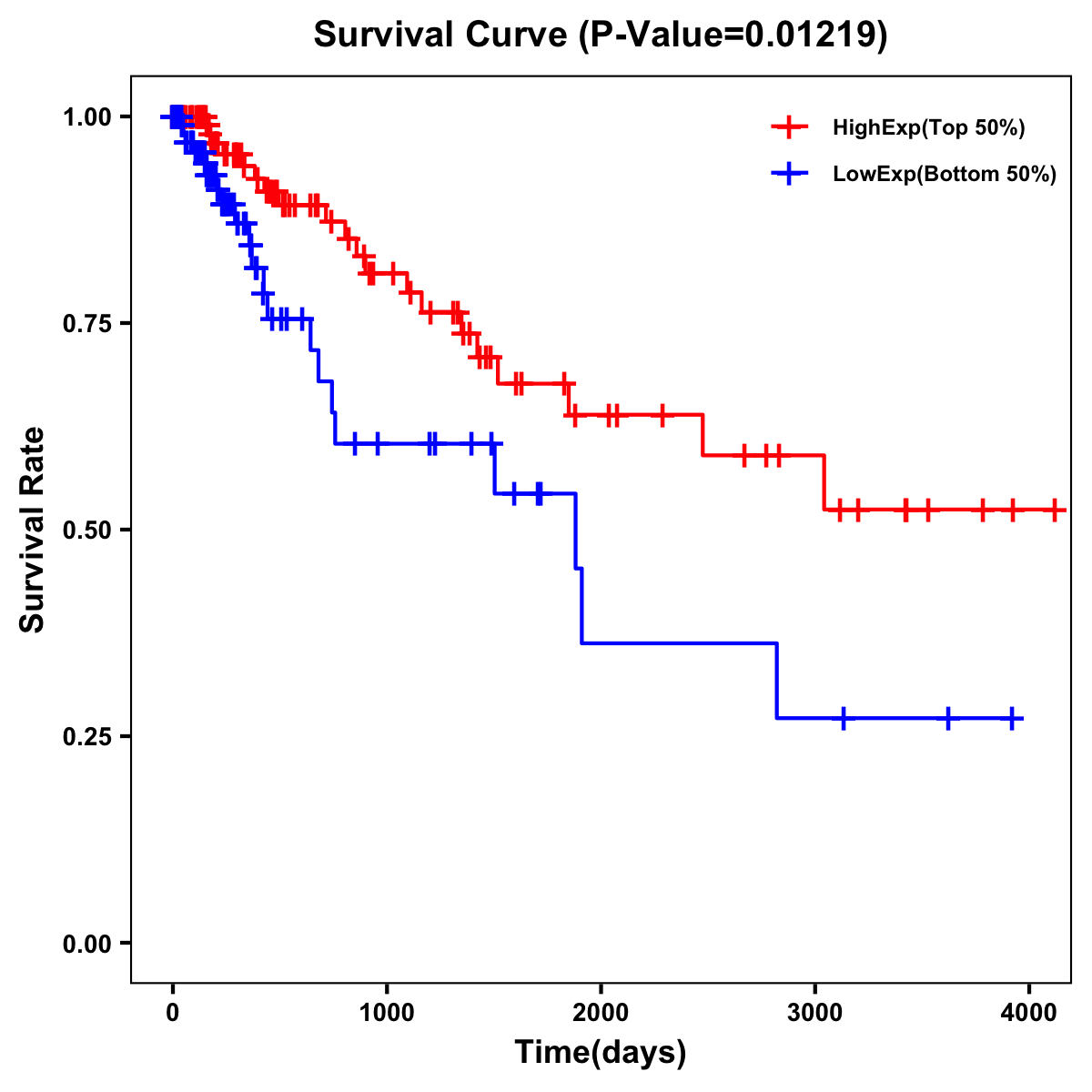 | Survival Curve of Colon Cancer on Expression Level |
