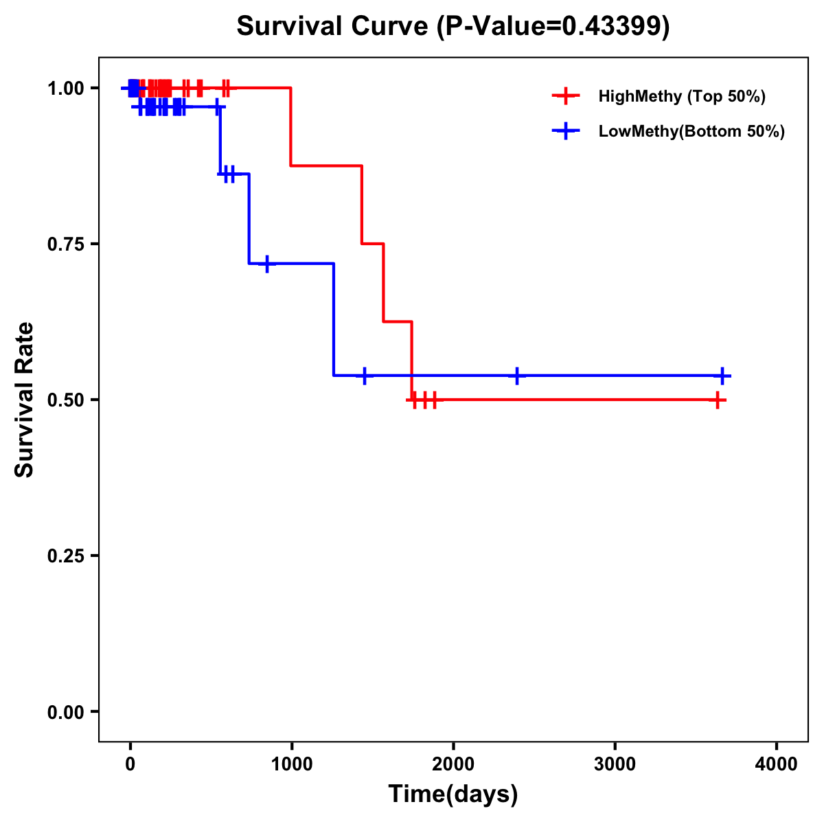 | Survival Curve of Colon Cancer on Methylation Level |