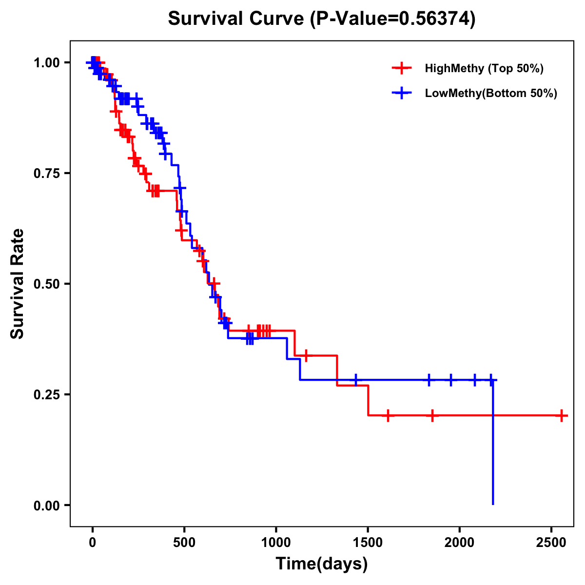 | Survival Curve of Pancreatic Cancer of Expression | Survival Curve of Pancreatic Cancer of Methylation | ||