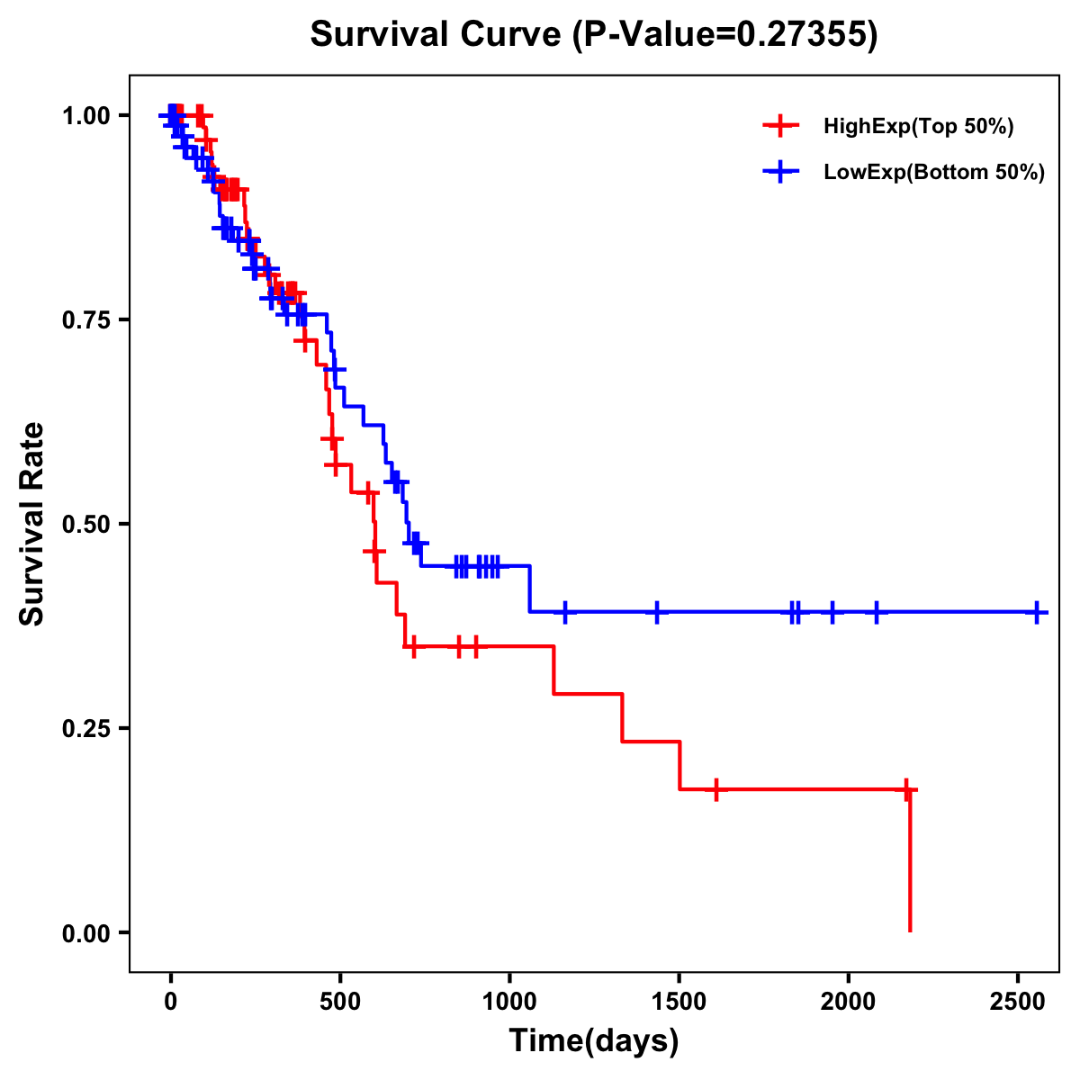 | Survival Curve of Pancreatic Cancer of Expression | Survival Curve of Pancreatic Cancer of Methylation | ||