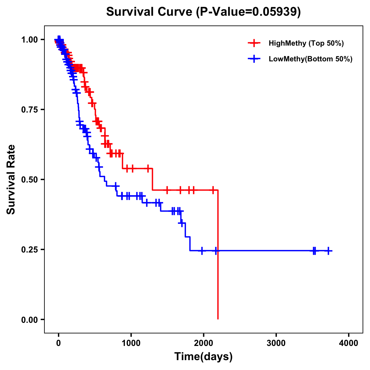 | Survival Curve of Stomach Cancer of Expression | Survival Curve of Stomach Cancer of Methylation | ||