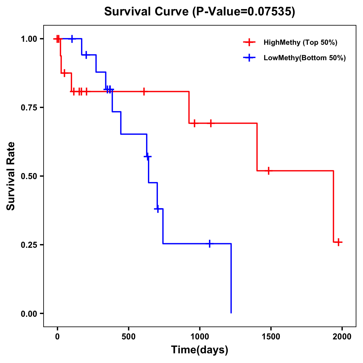 | Survival Curve of Biliary tract Cancer of Expression | Survival Curve of Biliary tract Cancer of Methylation | ||