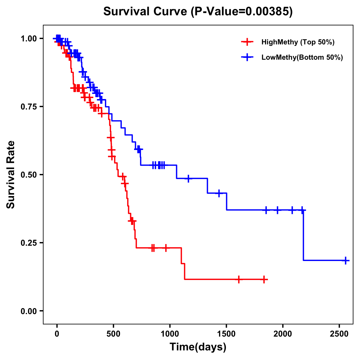 | Survival Curve of Pancreatic Cancer of Expression | Survival Curve of Pancreatic Cancer of Methylation | ||