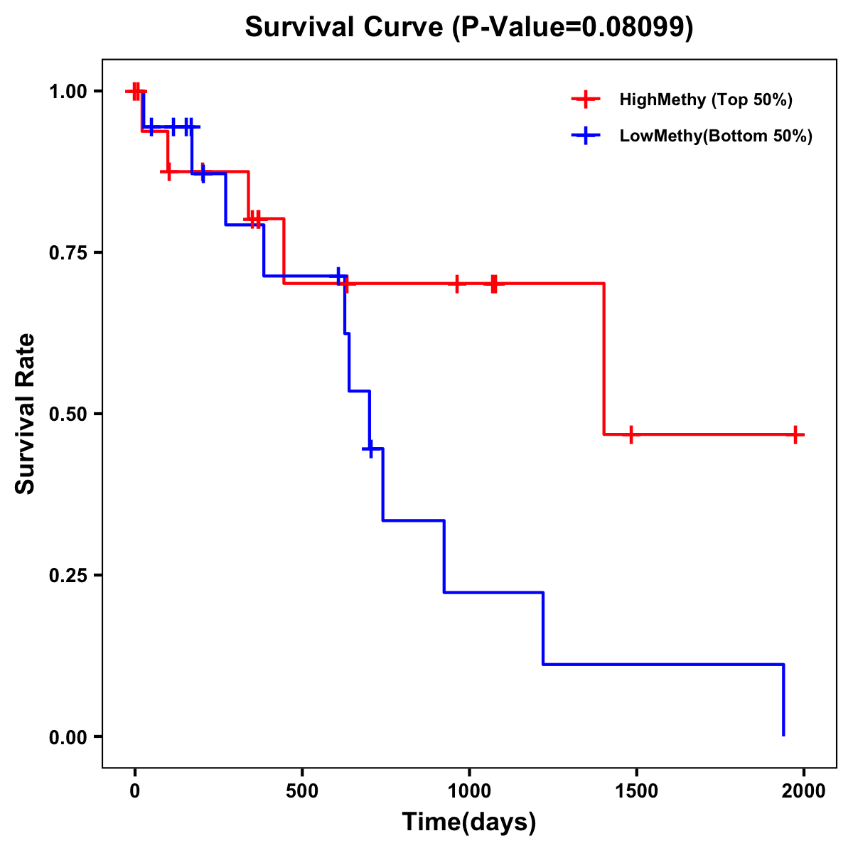 | Survival Curve of Biliary tract Cancer of Expression | Survival Curve of Biliary tract Cancer of Methylation | ||