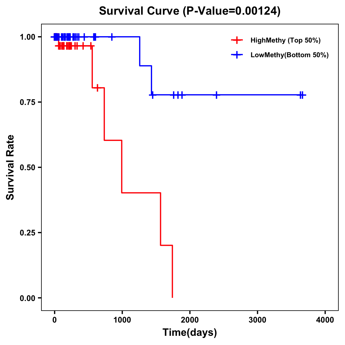 | Survival Curve of Colon Cancer on Methylation Level |