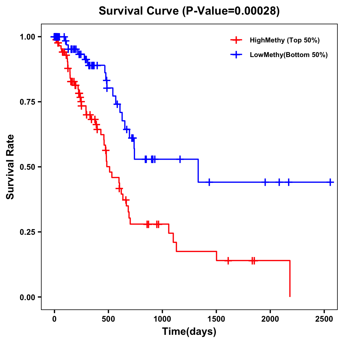 | Survival Curve of Pancreatic Cancer of Expression | Survival Curve of Pancreatic Cancer of Methylation | ||