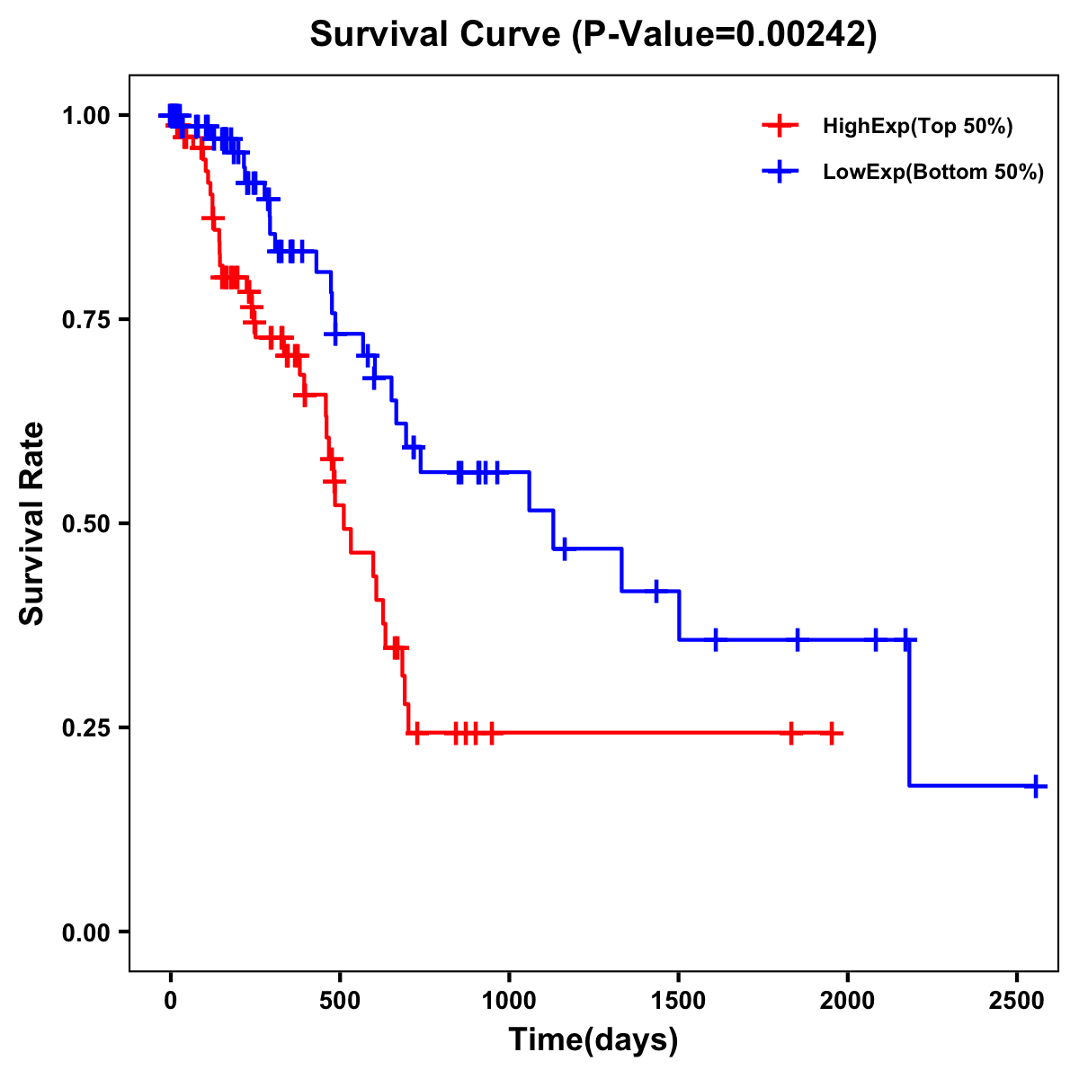 | Survival Curve of Pancreatic Cancer of Expression | Survival Curve of Pancreatic Cancer of Methylation | ||