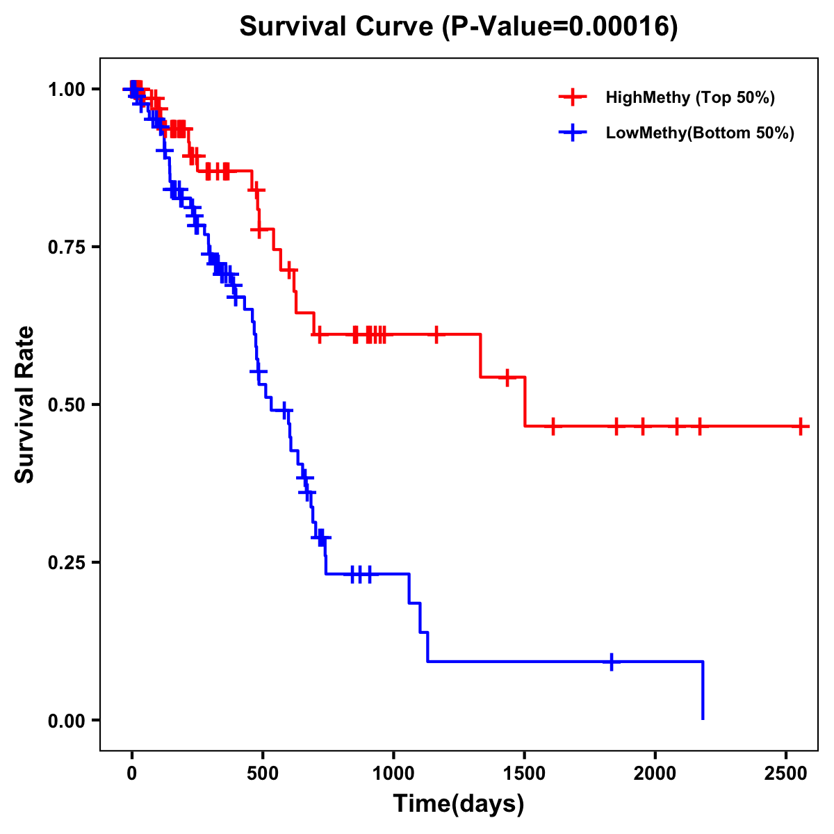 | Survival Curve of Pancreatic Cancer of Expression | Survival Curve of Pancreatic Cancer of Methylation | ||