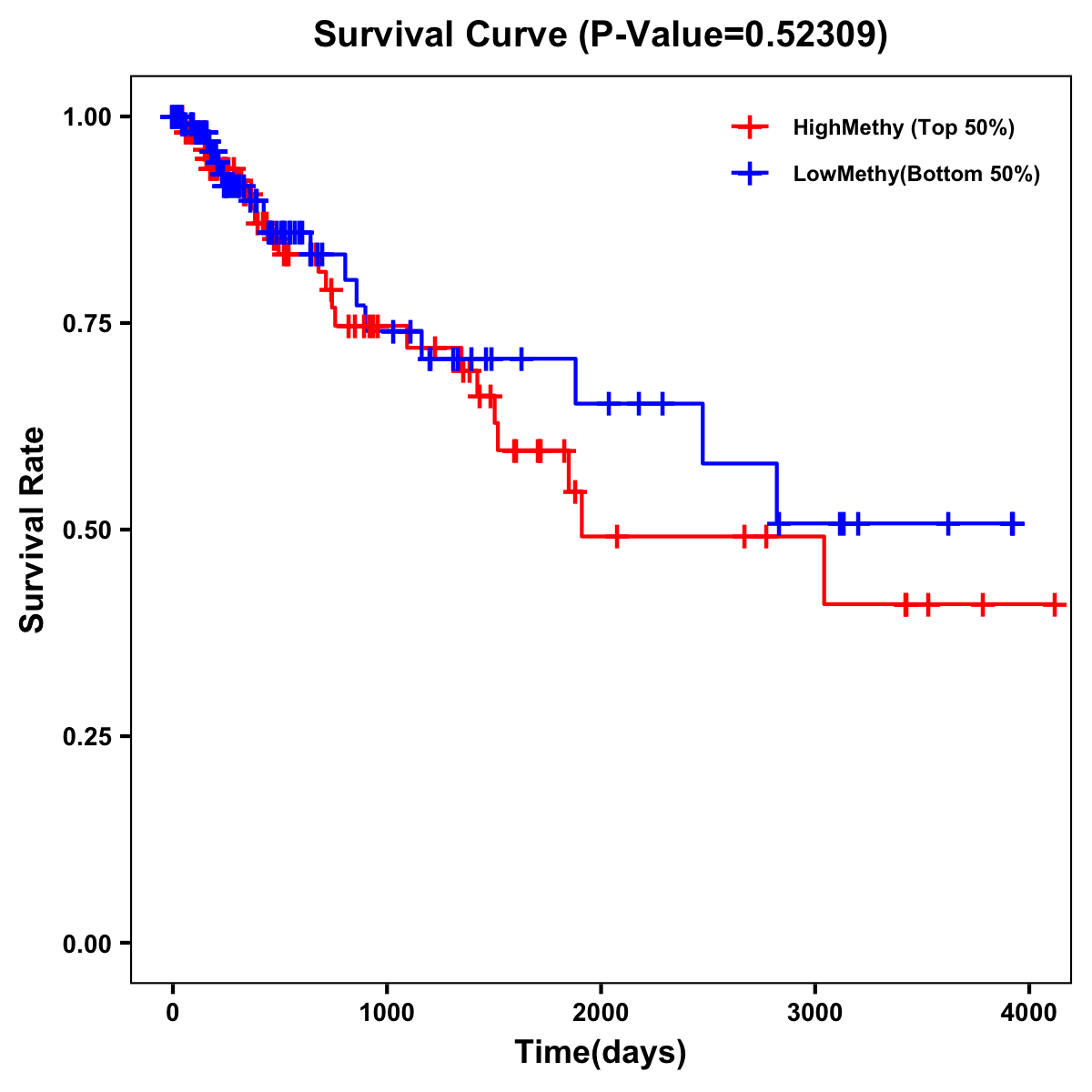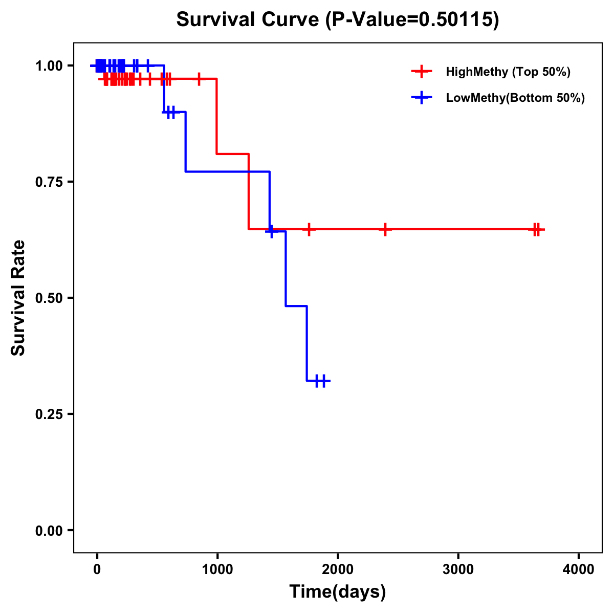 | Survival Curve of Colon Cancer on Methylation Level |