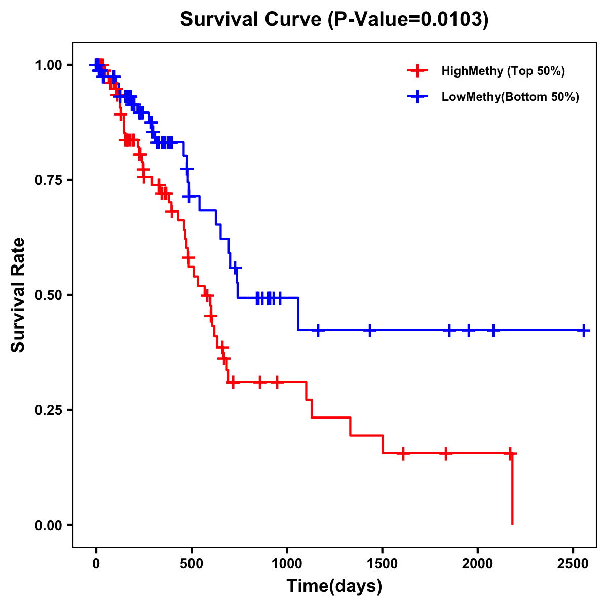| Survival Curve of Pancreatic Cancer of Expression | Survival Curve of Pancreatic Cancer of Methylation | ||