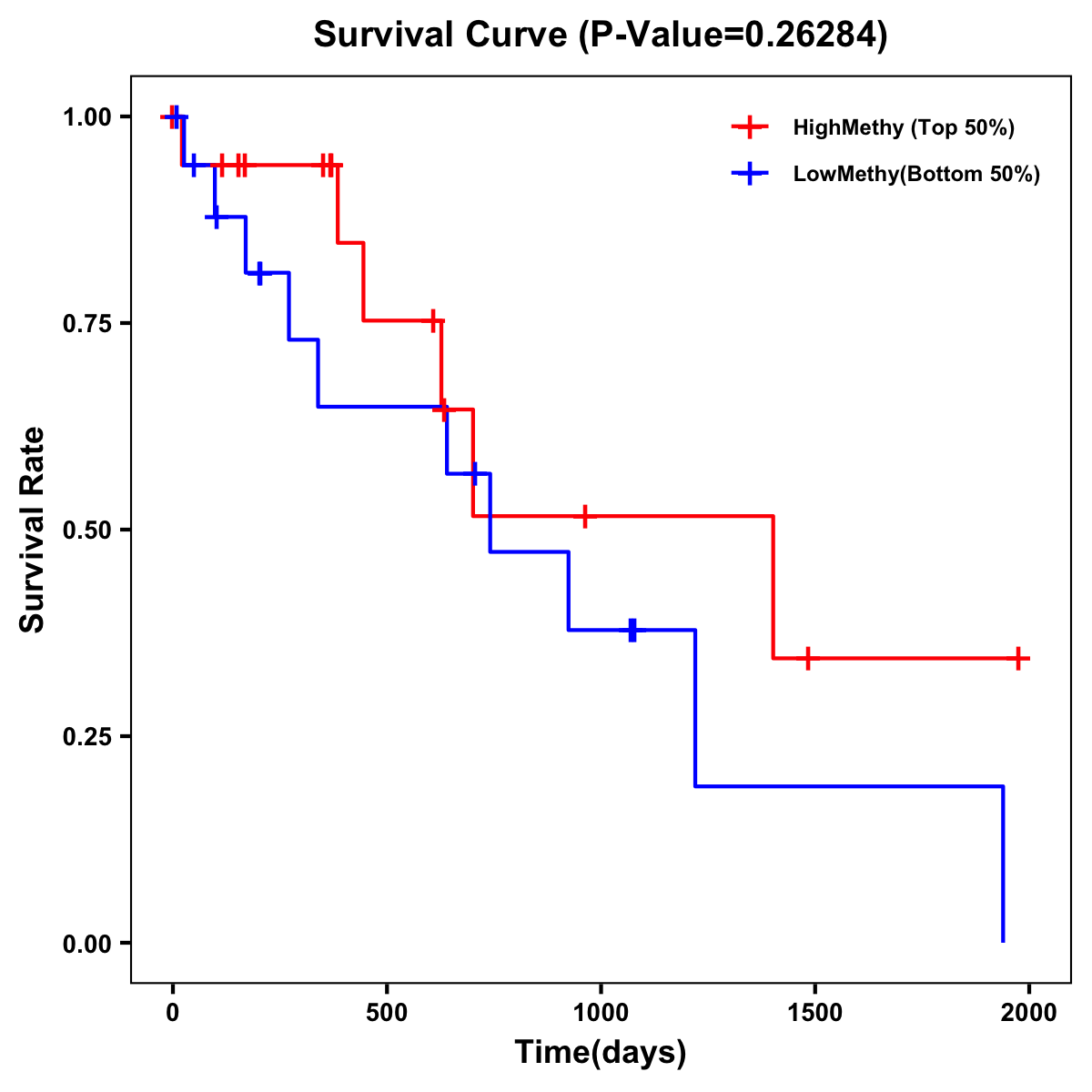 | Survival Curve of Biliary tract Cancer of Expression | Survival Curve of Biliary tract Cancer of Methylation | ||